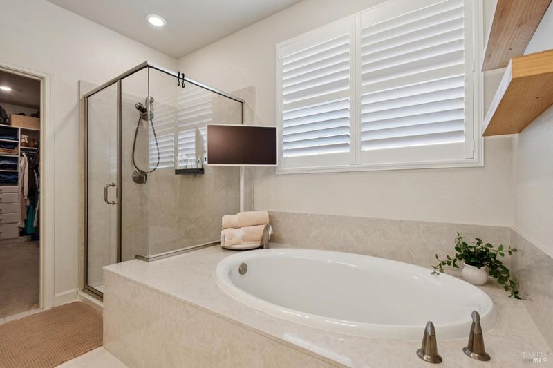 - Double Sinks, Low-Flow Toilet(s), Shower Stall(s), Soaking Tub, Walk-In Closet, Window