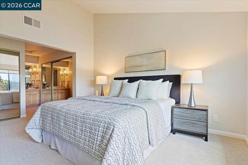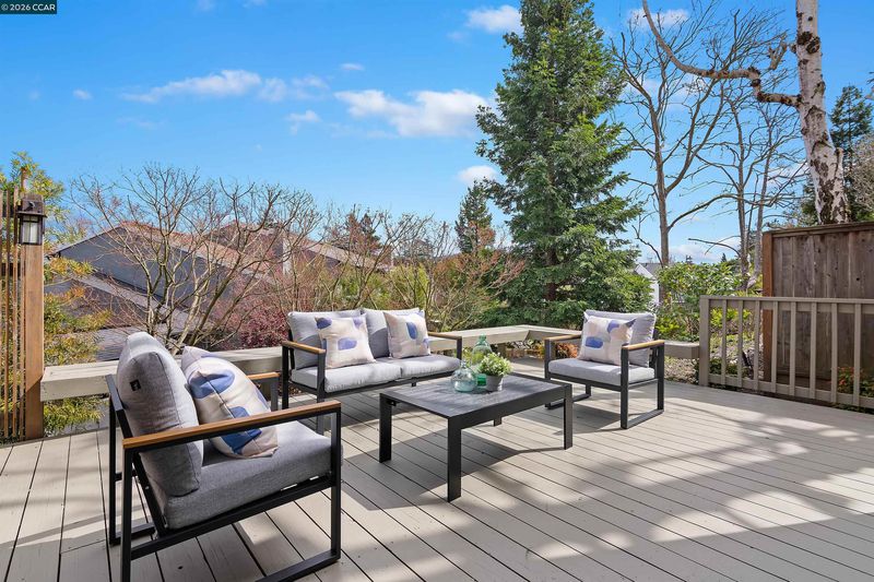 Welcome to your serene oasis in the Moraga Country Club! On a quiet cul-de-sac, this bright end unit townhouse offers 2 BR + a den along and 2,038 sqft of beautifully remodeled & expanded living space. Elegant hardwood flooring flows throughout the main areas with dramatic vaulted ceiling in the living room and high windows to fill the home with natural light and create a warm and inviting atmosphere. The remodeled kitchen with premium Viking gas range, upgraded countertops & cabinetry flows into breakfast room and expanded family room/great room. This bonus room is right where you want it - off from the kitchen, not detached over the garage. Each bedroom includes its own en suite bathroom, while the balcony den/office offers versatile space for so many uses. The attached garage is equipped with a pull-down ladder for bonus storage providing plenty of space for all your belongings. Outside, enjoy the tranquility of a gated courtyard garden with a soothing water feature or unwind on the rear deck with creek-side views of the surrounding hills. Access to unlimited golf, tennis, swimming in 4 pools incl one just steps away, pickleball, fitness center, bocce, and two restaurants year-round while you vacation at home!