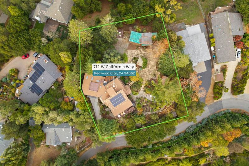 Welcome to a residence where artistry meets architecture. Set in Emerald Hills on an expansive view lot, the home was designed for those who value quality, creativity, and originality. From the custom iron gate by Burning Man artist Bryan Tedrick to the antique Santa Fe stained-glass entry window, every detail tells a story. Soaring ceilings and dual 7×20 folding glass doors dissolve boundaries between inside and out, opening to expansive decks with sweeping views. The chef's kitchen features a granite island, six-burner range with pot filler, oversized refrigerator, and custom cabinetry. The primary suite offers a spa-inspired granite bath with steam shower, soaking tub, walk-in closet, and gas fireplace. The lower level, once an art gallery, invites income potential or flexible living space with separate access. The grounds include terraced gardens, mature fruit trees, solar panels with EV charging, and cedar outbuildings ideal for a gym, studio, or retreat. Close to amenities, but it feels like a world away.