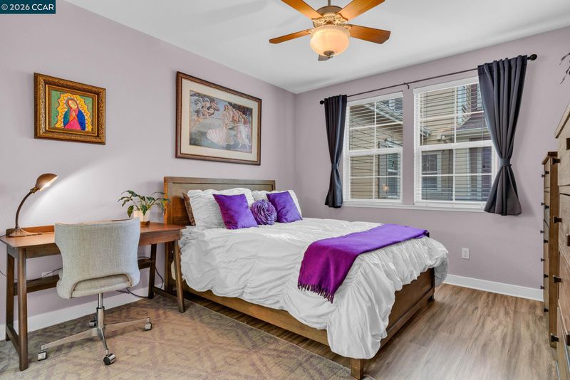 Welcome to this lovely Monte Vista Villas condominium where all of the living areas are one level. There are only 20 units in the entire complex where you are level-in and all on one level. The primary suite is quite large and features a huge walk in closet and a bathroom with dual vanities and a large soaking tub. The kitchen overlooks the dining area and has granite counters, stainless appliances including a gas stove! This unit also sits in one of the most private areas within the complex. Newer Armstrong floors and garage opener! The HOA features a clubhouse with gym and several parks and play areas. Compare this property to others...very few offer a two car tandem garage with inside access right into the home.