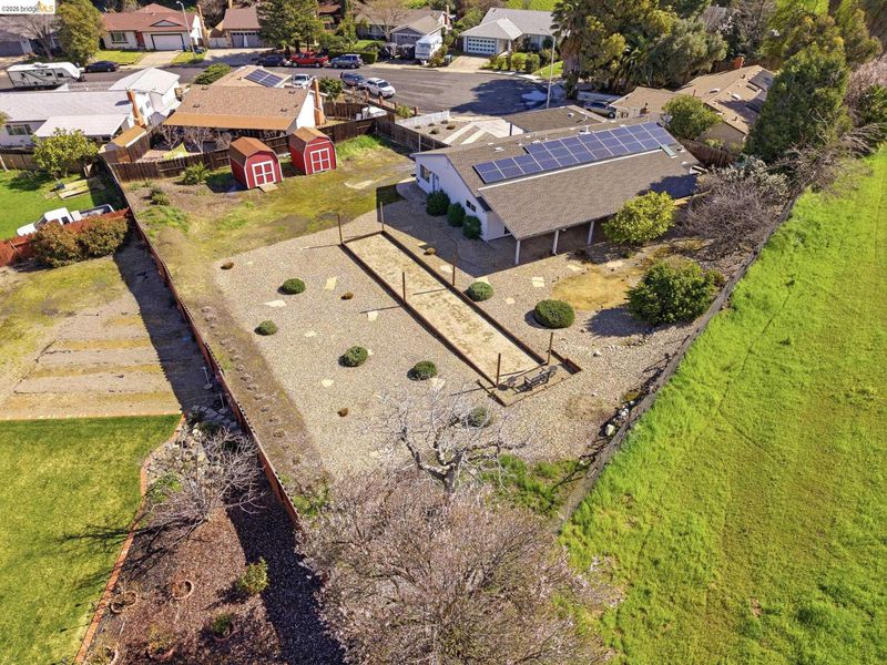 Set on an expansive half-acre with no rear neighbors, this one-of-a-kind single-story property offers space, flexibility, and privacy that’s hard to find in Antioch. This single-story home features 4 bedrooms, 3 bathrooms, and 2,289 sq ft of thoughtfully designed living space—including a fully attached ADU perfect for multigenerational living or guests done with permits The ADU offers its own bedroom with backyard access, living room, kitchenette, full bathroom, and a huge walk-in closet. Inside, you’ll love the natural light, beautiful hardwood flooring, tile kitchen, and plush carpeted bedrooms. The primary suite includes backyard access and a spacious walk-in closet with added storage. The kitchen is truly special with a skylight, breakfast bar, stainless steel appliances, oak cabinetry, sleek countertops, a beautifully designed backsplash, recessed lighting, a garden/greenhouse window overlooking the yard, and a pantry with a stunning barn door accent. Outside, enjoy a low-maintenance front yard, RV parking, a massive backyard with no rear neighbors, two large barn storage sheds, two expansive side yards, a brick built-in BBQ, bocce ball setup—plus room for another detached ADU. Close to trails, parks, schools, and freeway access, this home is truly a breath of fresh air.