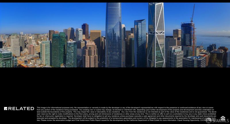 Stunning 2 bedroom 2.5 bathroom with city views. Starting on the 33rd floor, residences range from 1-3 bedrooms. Residences feature expansive layouts with floor-to-ceiling windows that emphasize grand views of SF Bay, Bay Bridge, & city skyline. Acclaimed Clodagh Design chose warm wood tones & authentic marbles to create stunning custom interiors. Open gourmet kitchens boast premium Miele appliances & spa-inspired bathrooms feature custom dual vanities & marble clad walls. Amenities & services include attended private lobby, 24/7 valet parking, fitness studio, pool, entertainment lounges & more.