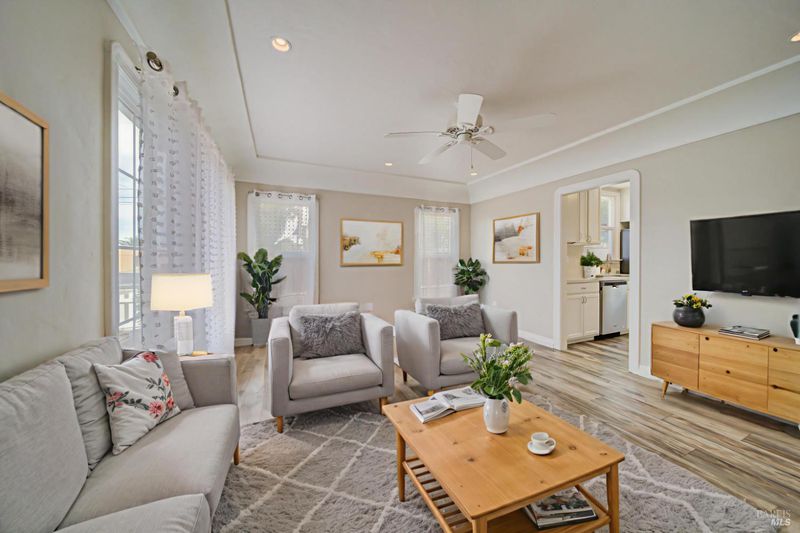 Welcome to 2328 Napa St - An amazing mid-century modern home in Vallejo. Absolutely adorable, stylish & remodeled 3-bedroom, 1-bath single story family home located on a corner lot! Fencing surrounding the property offers privacy with two separate gated yards, a 12ft gate for RV or boat parking. Home offers a cozy and inviting atmosphere with modern updates. The open layout features laminate flooring, newer carpet in bedrooms and abundant natural light throughout. Enjoy the bright, open living room, perfect for relaxation or entertaining. The bright eat-in kitchen nicely updated with quartz countertops, free standing gas stove, white cabinets, and newer whirlpool stainless steel appliances. The view through the windows overlooking the shaded backyard patio is perfect for morning coffee. The freshly interior paint provides a bright and inviting ambiance. Side yard includes a large patio with a tuff shed, offers plenty of space for your creative and personal touches. Other features include dual pane windows, recess lighting, exterior paint, newer water heater, electrical subpanel, and gas line. Located close to H37, H29, shopping, restaurants, this Vallejo home is the perfect place to call your own!