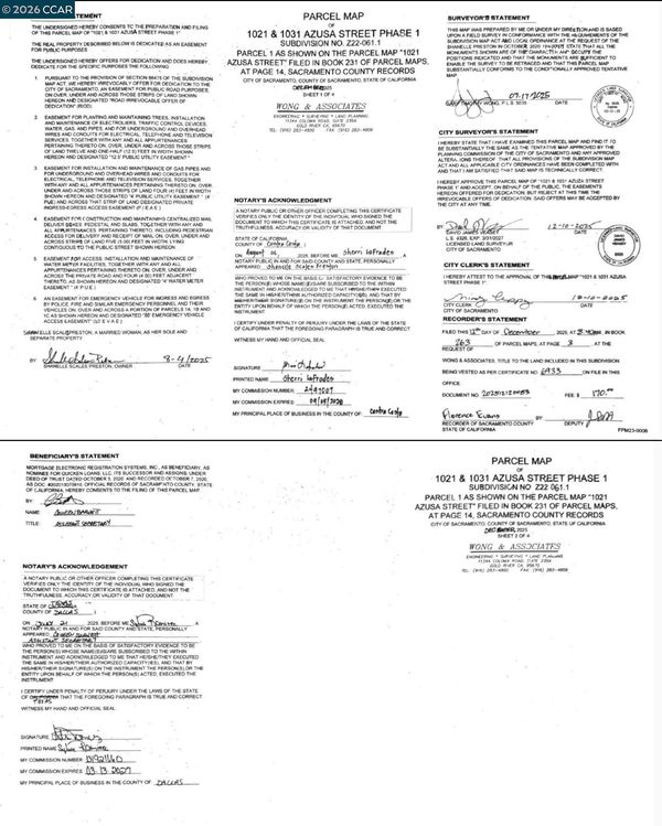 EXCLUSIVE OPPORTUNITY ALERT! Calling all developers, investors, and visionaries! Own TWO side by side prime property with not one, not two, not three but FOUR buildable lots (each with its own APN#) - perfect for building multiple units or holding for long-term growth! Key Highlights: PROPERTY 1 (1021 Azusa Street. Asking price $725K) - 1 existing property with 3 bedrooms and two full bathrooms - 2 separate lots with individual APN numbers - Potential for building 2 additional properties Also available for sale is the very next-door property. PROPERTY 2 (1031 Azusa Street also asking price of $725) - 1 existing property with 3 bedrooms and two full bathrooms - 2 separate lots with individual APN numbers - Potential for building 2 additional properties Don't miss out on this rare chance to expand your portfolio!