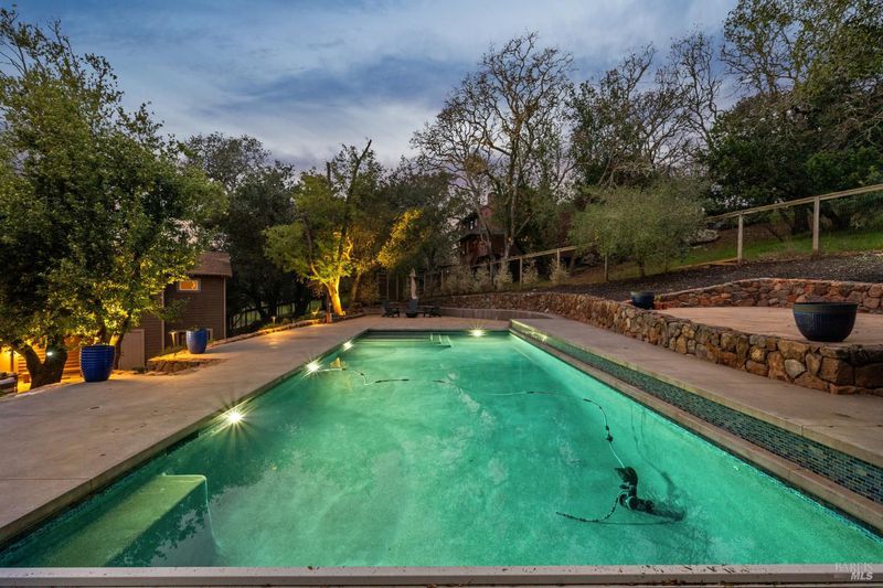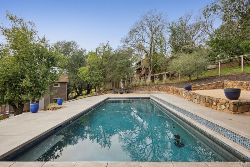 Reimagine a well-located home with space, privacy, and views, creating something truly special in one of Santa Rosa's most desirable settings. This Bennett Valley estate with its enduring style and resort-like yard is poised for its next chapter. This spacious, well-laid-out home offers a sense of privacy that feels worlds away yet sits just minutes from amenities, parks, and miles of hiking and biking trails. The truly exceptional backyard is thoughtfully designed for both grand entertaining and everyday enjoyment. The expansive deck unfolds from the breakfast room - an ideal setting for large gatherings or peaceful lounging surrounded by nature. Handsomely laid stone steps guide you to your own private retreat on the terrace, perfectly positioned to capture sweeping views of the hills while offering space for sun and relaxation poolside. The grounds are enriched by an abundance of mature fruit trees, a hobby vineyard and plantings, giving the landscape a lush, established feel. The result is a backyard that is nothing short of extraordinary, a haven that feels both expansive and intimate, beautifully curated yet natural, and one of the home's most remarkable features. Vaulted, beamed ceilings crown the living room, where a dramatic stone fireplace anchors the space and creates a timeless focal point. Adjacent dining area flows effortlessly to the kitchen, perfectly positioned for both intimate dinners and social get-togethers. The generously sized kitchen is a true hub for daily life featuring a large center island, cooktop, double ovens, and abundant storage - ideal for those who enjoy cooking, hosting, or simply gathering around the heart of the home. The main level offers comfortable and mostly single-level living with a primary suite, three additional bedrooms, two bathrooms, laundry room and access to garages. The lower level adds flexibility with a large family room complete with wet bar, full bathroom, plus a spacious room for a bedroom or office. A separate entrance makes this level ideal for guests, extended family, or potential second unit. Additional highlights include a wine cellar, 2-car garage with storage and ~800sf bonus room with half bath above it, offering endless possibilities for a studio or creative space. Timeless Design. Enduring Style. Exceptional Setting.