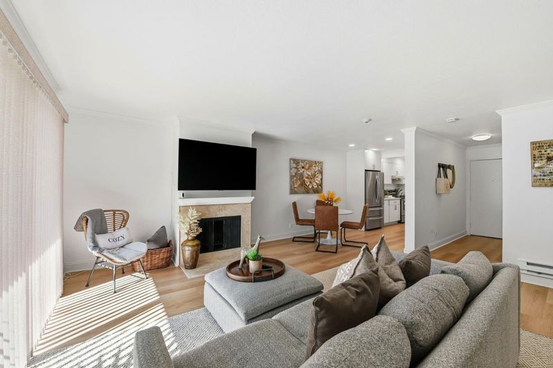 Beautifully updated condo in a prime location! This first-floor unit is situated in a secure building and offers a fantastic open floor plan. The spacious 2-bedroom, 2-bath layout features a large living area ideal for relaxing, dining, or working from home. A large sliding glass door opens to the expansive pool deck, flooding the space with abundant natural light. The updated kitchen boasts quartz countertops, modern cabinetry, a sleek sink, glass tile accents, updated lighting, and stainless steel appliances. Natural wood-tone flooring throughout the home creates a fresh, contemporary feel, while a cozy fireplace adds warmth and charm for cooler evenings. Additional highlights include three walk-in closets, gated underground parking with convenient access to the unit, and a walk-in storage room in the garage. Residents enjoy community amenities including four fenced swimming pools and two tennis courts. HOA dues cover water, gas, garbage, and exterior maintenance. Ideally located near downtown Mountain View with easy access to Highway 101, 85, and El Camino Real. Welcome home!