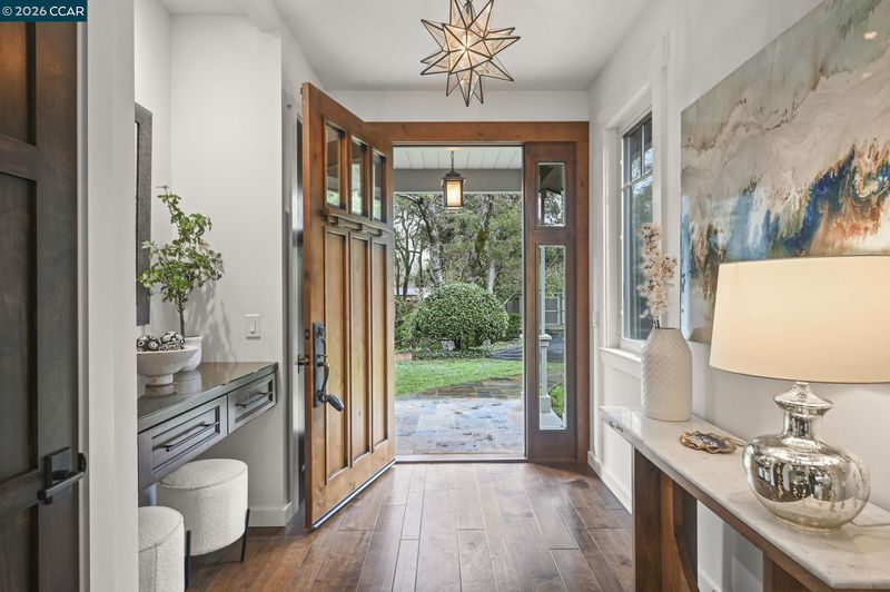 Set in the beloved Burton Valley–Trails neighborhood, this rare .86-acre retreat offers a peaceful escape just steps from the Lafayette-Moraga Trail and close to Lafayette’s highly acclaimed schools. Fully remodeled in 2017, this turnkey custom home blends comfort, function, and refined design. The chef’s kitchen with Wolf appliances and quartzite counters opens to the main living areas, while a formal dining room with fireplace and bar is perfect for entertaining. High ceilings, custom built-ins, designer paint, and engineered wood and tile floors create a timeless feel. The primary suite features a walk-in closet, custom cabinetry, spacious shower, and private hot tub access. A third bedroom serves as an executive office with Murphy bed and built-ins. Outdoors, enjoy mature oaks, redwoods, a pebble-bottom pool, owned solar, whole-home generator, detached gym with HVAC, and a charming creekside cottage—all at the end of a private court.