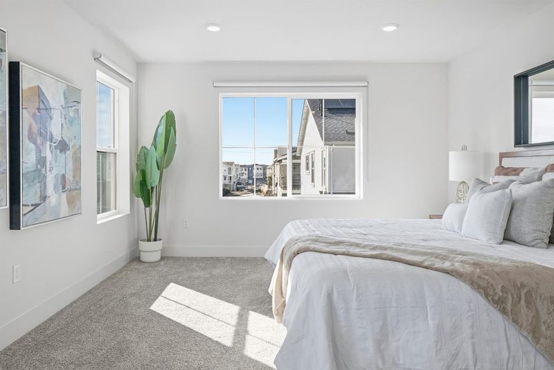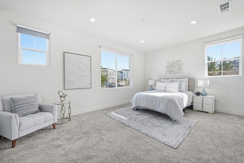 BEST LOT LOCATION! Stunning 1 YEAR NEW unique CORNER LOT Single Family w/ 3 UNOBSTRUCTED SIDES, PARK & MOUNTAIN VIEWS, and ABUNDANT NATURAL SUNLIGHT at a prime location in a sought-after community. Luxurious experience in this 3b3.5b 2,201 SqFt beautiful home w/ 3 spacious SUITES. The open layout of the majestic main level features a gourmet kitchen w/ extra long kitchen island, beautiful cabinets/countertops, high-end s/s appliances, and pantry. Bright living and dining areas flow seamlessly to a private large balcony -perfect for effortless indoor-outdoor entertaining. Spacious master suite w/ double-sink vanity, tub & shower, and a large walk-in closet plus extra storage. Spacious and sun-filled 1b1b suite on the 1st floor for maximum flexibility. Upgraded hard flooring and recessed lights throughout. Central heating & AC w/ dual zones, owned solar system. Two-car garage w/ extra storage area, plus plenty of parking spots in the community. Well-maintained vegetable & fruit garden in the sun-filled PRIVATE YARD. Community park right outside. Community provides amenities: clubhouse, pool, playground, BBQ area, etc. Unbeatable convenience -close to tech companies, e.g. Meta, Tesla, Lucid, Logitec, etc. Easy access to the Dumbarton Bridge, Hwy 880, etc.