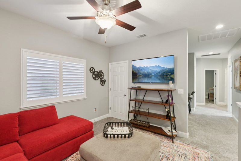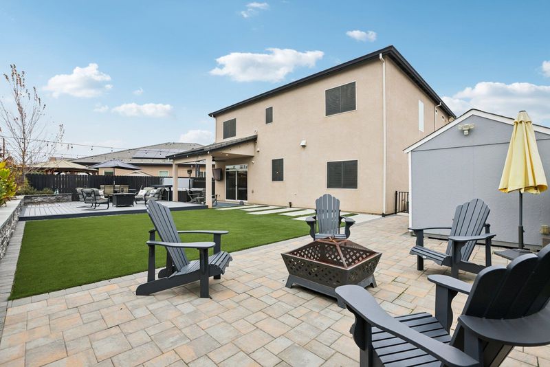 Stunning two-story home with a resort-style backyard designed for elevated living and entertaining. This maintained residence offers a bright, open layout with refined finishes and versatile spaces ideal for work-from-home, guests, or multi-generational living. The interior features spacious bedrooms, each with its own walk-in closet, updated bathrooms with dual vanities, and a well-appointed primary suite designed as a true retreat. The owner’s bath includes an extra-large walk-in shower and elevated-height vanities for a spa-like feel. Neutral designer tones and abundant natural light create a polished, move-in-ready atmosphere. A generous upstairs loft offers flexible space for a media room or lounge, while a built-in desk with filing cabinets and shelving provides a dedicated workspace. Step into the backyard retreat, complete with a custom Trex deck with built-in lighting, a covered patio with ceiling fans, and a hot tub featuring a dramatic rock waterfall. Multiple seating and dining areas, a freestanding fire pit, raised planters, and string lighting create a private, resort-like setting ideal for entertaining. Conveniently located near parks, schools, shopping, and commuter routes. A blend of sophistication, comfort, and outdoor living best experienced in person!