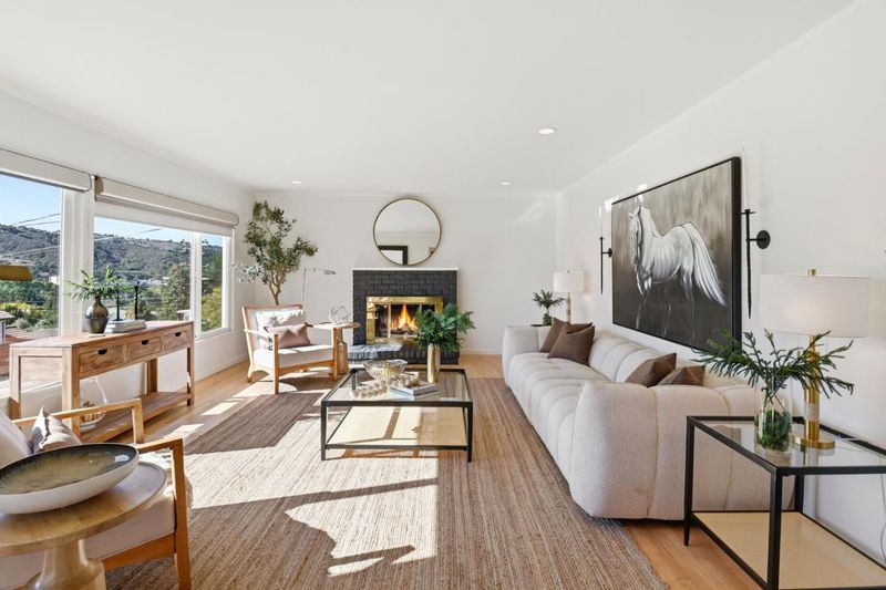 Welcome to this remodeled & stylish elevated rancher w/enchanting views of the western hills. Adorned w/a great floorplan featuring 3 BR/2 BA + HOME OFFICE & fantastic backyard oasis, ideal for watching the sunset, stars, relaxation and entertaining. Upon entry, you're greeted by an expansive LV w/recessed lights, newly refinished hrdwd flrs & an elegant fireplace, setting a warm and inviting tone. Gourmet kitchen w/pullout cherrywood cabinets, quartz counters, a gas stove, Miele dishwasher, large pantry, garden window overlooking the patio & bckyrd access. A cozy dining area is open to kitchen. A central hall leads to all 3 generously sized BRs, including primary suite w/built-in storage system, a spacious walk-in closet, en-suite BA & nearby bckyrd access. Double pane windows, beautifully refinished hrdwd flrs, fab natural lite, private & usable terraced bckyrd w/patios, mature landscaping & a Redwood grove which are ideal for relaxation & entertaining. A 2-car attached gar w/adjacent basement & laundry facilities are perfect for hobbies & extra storage. Close to top-rated schools, parks, vibrant downtown, shopping, restaurants, transportation, SFO & commute corridors to Silicon Valley & SF This refined sanctuary offers the ideal blend of tranquility & vibrant urban living!