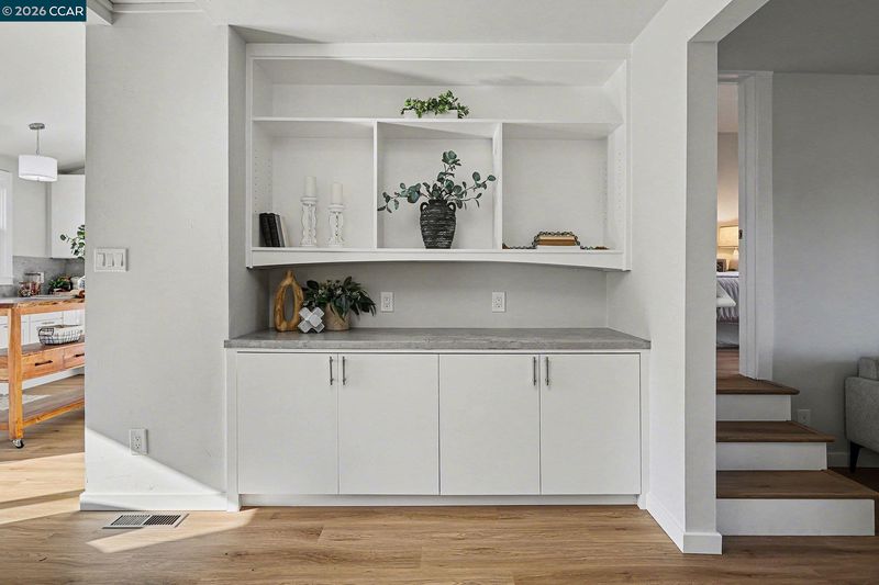 WOW! This recently renovated 3br, 2ba home on a large 7,000sf lot is a MUST SEE. Walk into the living room, with El Sobrante hills views and enjoy the corner fireplace. Up 3 stairs is your main bedroom, with ensuite and a deck overlooking the front yard with views of the El Sobrante hills. Or make it a home office (terrific if you see people at work), or a private guest suite. Back to the main level is a comfortable sitting area with large built-in that opens to the dining area and totally updated kitchen, with built-in appliances and stackable washer/dryer. Off the large main hallway are 2 large bedrooms and an adjacent updated bath. LVP flooring throughout, freshly painted inside and out, and a huge backyard. Great for play, pets, animals, or even build your own ADU. Plans are available for a 2br, 2ba ADU (included, depending on terms). One car garage, and 2 driveways make off street parking easy. Don't miss this one!