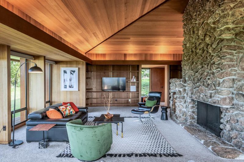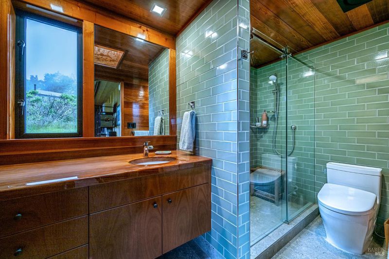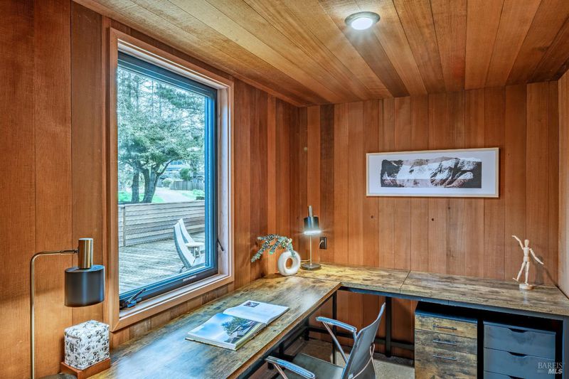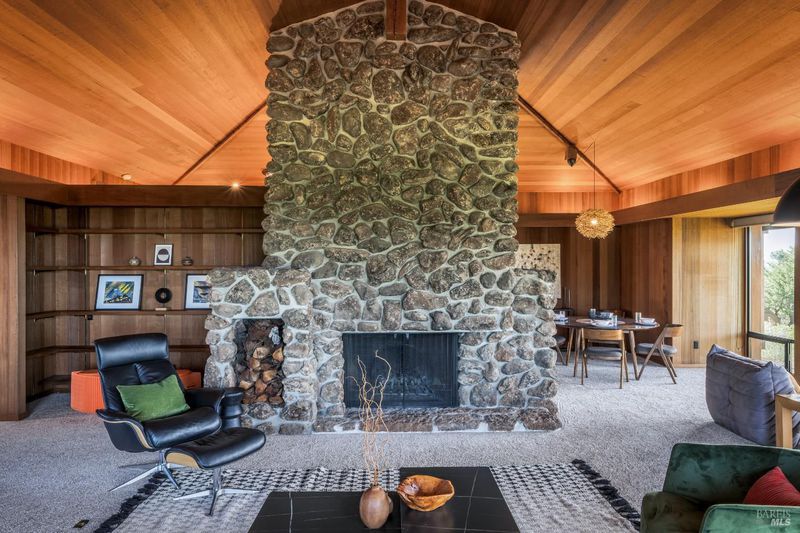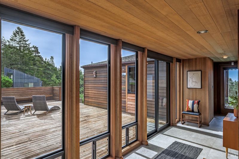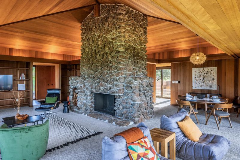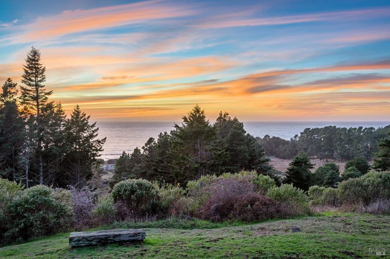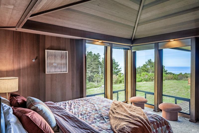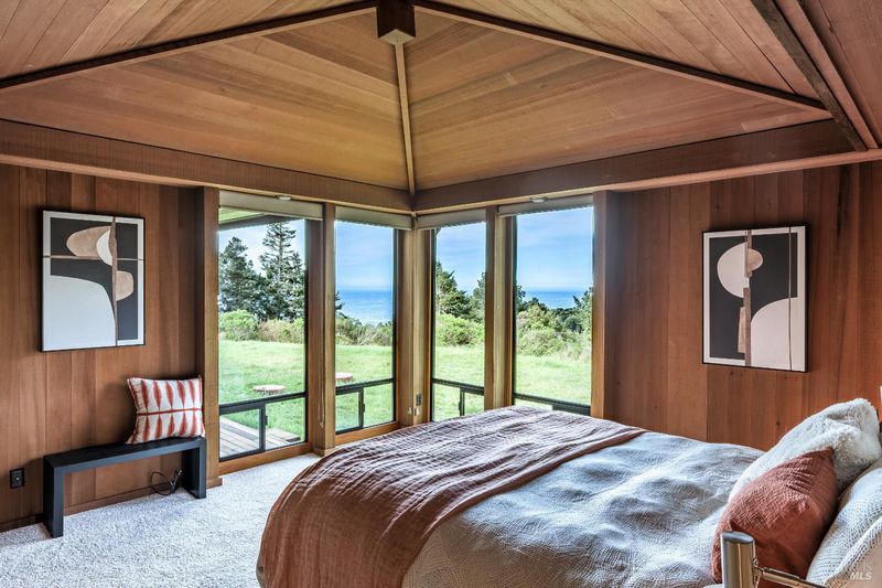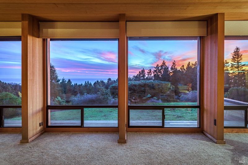 A rare and distinctive early Sea Ranch residence set on 1.17 acres, bordering on commons and capturing sweeping, unobstructed, panoramic ocean views of Black Point and the Pacific Ocean. Privately nestled within a serene natural landscape, this elegant one-story home embodies the essence of coastal living at The Sea Ranch. Designed in 1970 by noted architect Carson Bowler, the home showcases timeless design and thoughtful craftsmanship. The use of clear-heart redwood inside and out enhances the warmth of the property. The expansive open-concept living, dining, and kitchen area is ideal for entertaining, anchored by a dramatic stone fireplace and framed by floor-to-ceiling windows that invite the outdoors in. A generous ocean-facing deck provides a front-row seat for whale migrations and breathtaking sunsets, while a second, more sheltered deck offers the perfect setting for outdoor dining, container gardening, a hot tub perhaps and gatherings. The home features two spacious bedroom suites, each with its own en-suite bath and walk-in closet, offering both privacy and stunning ocean vistas. Recent updates include new carpet and tile throughout, as well as beautifully remodeled bathrooms with mahogany vanity completed by the owner/architect all with permits. Additional highlights include abundant storage, a walk-in pantry, a separate laundry room with new washer/dryer, and an attached three-car garage. The kitchen is enhanced with a new cooktop, dishwasher, built-in refrigerator, and under-counter lighting. Radiant heated slab floors and new insulated glass windows ensure year-round comfort. This is a truly special offering - an iconic Sea Ranch home where architecture, nature, and tranquility come together in perfect harmony.