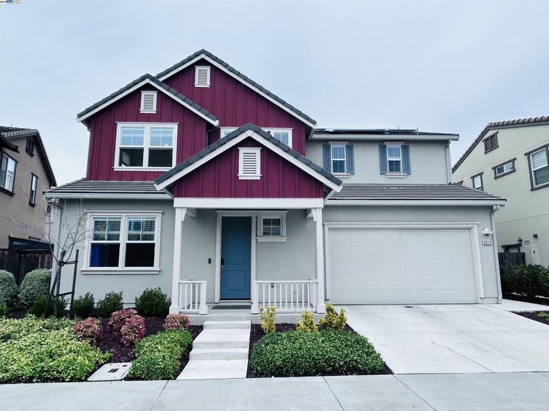 Welcome to this stunning 5-bedroom, 3.5-bath home in Newark’s highly sought-after Sanctuary Village. Offering 2,717 sq ft of thoughtfully designed living space on a larger 5,811 sq ft premium lot, this home blends modern comfort with elegant style. The main level features soaring 10-ft ceilings, engineered flooring, recessed lighting, and a gourmet kitchen with quartz countertops, stainless steel appliances, and a large center island—perfect for everyday living and entertaining. A main-level bedroom with an en-suite bath provides an ideal setup for guests or multigenerational living. Upstairs, enjoy a versatile loft area perfect for family entertainment or a home office. The expansive primary suite features a soaking tub, dual vanities, and a generous walk-in closet, while three additional bedrooms share a well-appointed hall bath. Additional highlights include an upstairs laundry room, central heating and AC, dual-pane windows, a tankless water heater, owned solar, and an EV charger. The professionally designed, low-maintenance backyard features paver hardscaping, a new pergola, landscaped flower garden, lawn area, and a kids’ sand play zone—ideal for outdoor relaxation and entertaining. Conveniently located near major employers, commute routes, shopping, and dining.