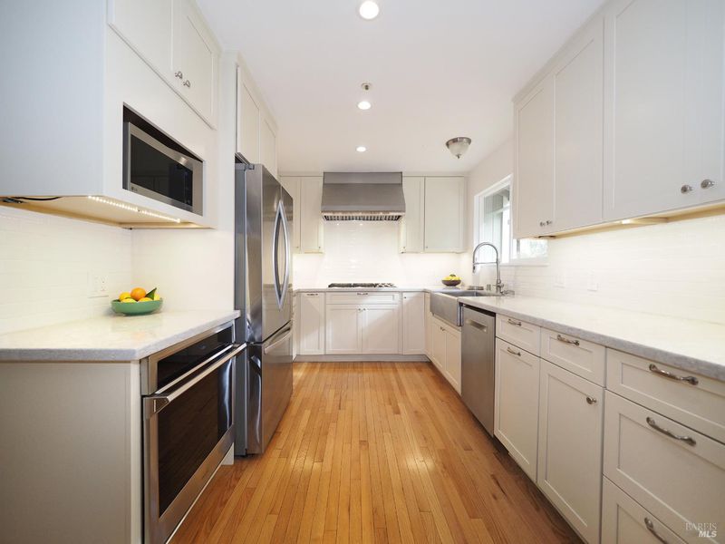 Charming Geyserville home on 1 Acre, nestled at the end of a private lane, this stunning 3-bedroom, 3-bathroom home spans 1,996 square feet and offers a perfect blend of rustic elegance and modern comforts. Set against a backdrop of majestic redwoods and the gentle murmur of a creek, this property promises tranquil living and endless possibilities. Spacious formal living room for all your entertaining, the light-filled, design seamlessly connects to the family room, featuring beautiful real oak hardwood floors and a cozy gas fireplace, with the updated kitchen and dining area. The kitchen is a chef's dream, boasting stainless steel appliances, a new tile backsplash, quartz countertops, custom cabinetry with soft close drawers, and a gourmet cooking range. Entertain effortlessly on the expansive custom back deck, adorned with a charming pergola and overlooking the large partial fenced yard, which is home to flourishing fruit trees. This outdoor space is perfect for gatherings or simply enjoying your serene surroundings. The home features a versatile layout with one bedroom and a full bath conveniently located on the main level, while the upper level hosts a generously sized primary suite with a newly renovated en-suite bathroom and a walk-in closet, along with a well-appointed second bedroom. Ample storage throughout ensures everything has its place with linen and entryway coat closet. With recent updates, including refreshed guest bathroom, newer roof, newer dual pane windows and dedicated laundry room, this home is move-in ready. Additionally, the property is zoned for an accessory dwelling unit (ADU) and farm animals, making it ideal for those looking to enhance their rural lifestyle. Experience the best of Sonoma County living in this bright, spacious home that offers both comfort and versatility, all while being surrounded by nature's beauty. A private well for exterior landscaping: Fruit trees include, apple, pear, fig, lemon, lime, mandarin & orange. Don't miss your chance to make this tranquil retreat your own! "Not just a place to live it's a Lifestyle!" Make Geyserville your new address..........