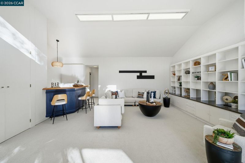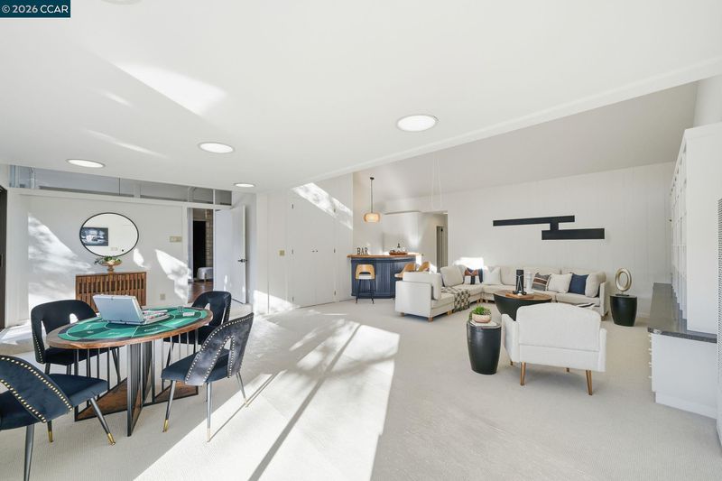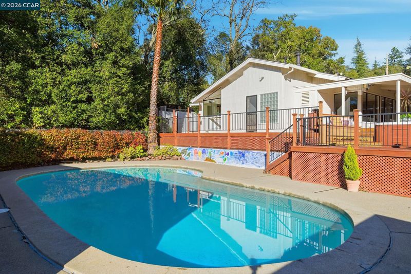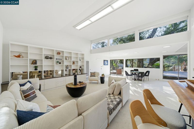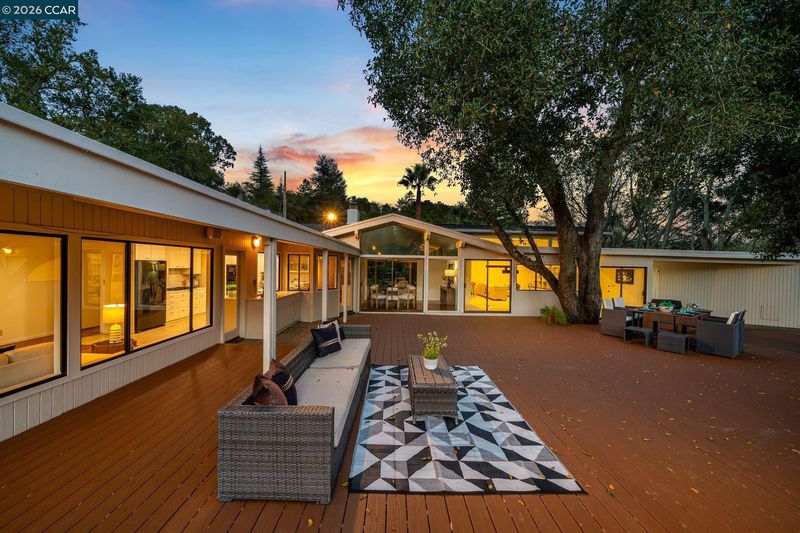 Authentic, single-level Mid-Century-inspired home set on a private 0.56-acre lot in the highly desirable Orinda Country Club. Approx 4,045 sqft, this residence offers 4 beds, 3.5 baths, and a dedicated office, showcasing classic mid-century architecture with cathedral beamed ceilings, skylights, and dramatic glass walls seamlessly connecting indoor/outdoor living while capturing sweeping views of Orinda and the Berkeley Hills. Expansive living and dining rooms open directly to flat outdoor areas ideal for entertaining, relaxing, and sunset dining. A gourmet kitchen and adjoining family room form the functional heart of the home. The primary suite is a private retreat with an office/sitting room, two walk-in closets, sauna, and jetted tub. A south-wing entertaining room with a private entrance offers flexible use as potential guest quarters or an au pair suite.Resort-style grounds include a solar-heated swimmer’s pool and spa, pool house, BBQ area, mature landscaping, and flagstone patio creating a serene setting for relaxation, wellness, and exceptional entertaining. Top-rated, award-winning Orinda Schools. Close to parks and walking trails, downtown Orinda, BART, shopping, dining, freeway.Mid-Century Modern homes of this scale, quality, and tranquil setting are increasingly rare