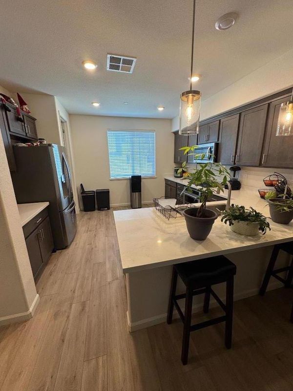 Welcome to this charming home in Gilroy, offering spacious living with 1,818 square feet. This residence features three bedrooms and one full bathroom with double sinks, perfect for comfortable family living. The kitchen is equipped with a gas cooktop and electric oven, seamlessly connected to the family room, ideal for entertaining and daily activities. Enjoy the warmth of carpeted flooring throughout. Essential amenities include central heating and cooling, ceiling insulation, and double pane windows for energy efficiency. The laundry area is conveniently outfitted with a 220V electricity hookup. This property also boasts a two-car garage, providing ample storage or parking. Located within the Gilroy Unified School District, this home is set on a manageable 758 square foot lot, offering a comfortable, low-maintenance lifestyle in a vibrant community.