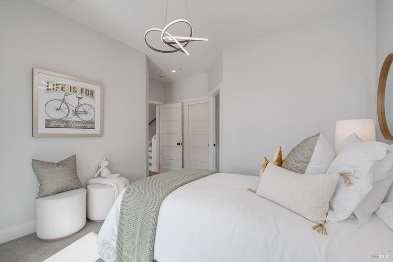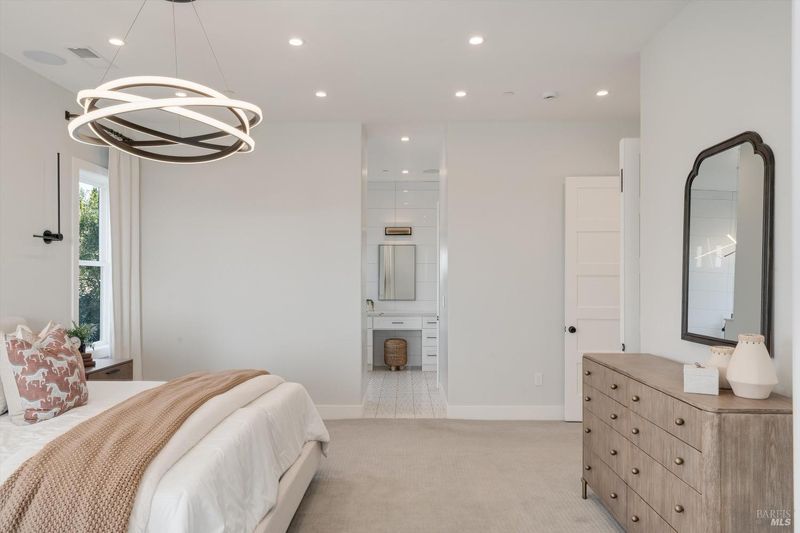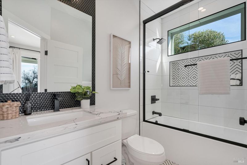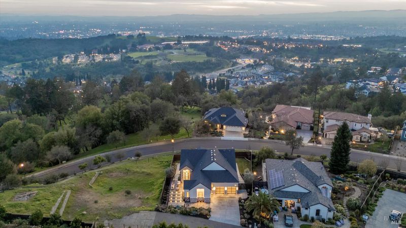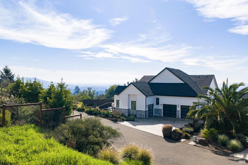 Experience elevated living in a thoughtfully designed contemporary residence that balances style, functionality, and long-term livability. A spacious and inviting front courtyard welcomes you inside, opening to an open-concept interior filled with natural light, where expansive windows frame sweeping, uninterrupted views of Santa Rosa. The home offers four spacious bedrooms and four well-appointed bathrooms, supporting everyday comfort and hosting with ease. The heart of the home flows seamlessly between kitchen, dining, and living spaces, ideal for modern living and entertaining, while a large lower-level space provides flexible use for a media room, gym, or home office. Upgrades throughout reflect a quality-focused approach, including European white oak flooring, motorized window shades, whole-house water softener, an integrated Sonos audio system, and pre-wired connectivity to support today's connected lifestyle. A three-car garage provides practical storage and workspace, supporting everyday use without compromise. Outdoor features and architectural details complement the home's elevated setting, with expansive sightlines and a fully fenced rear yard offering privacy and usable outdoor space. Located in the Fountaingrove area of Santa Rosa, this hillside setting with convenient access to downtown, wine country, and outdoor recreation, this home combines views, quality, and location in a cohesive, well-executed offering.