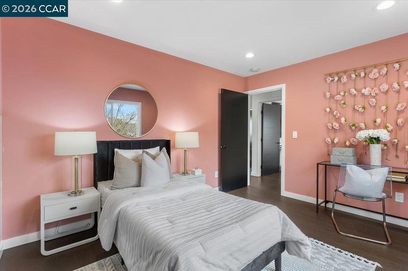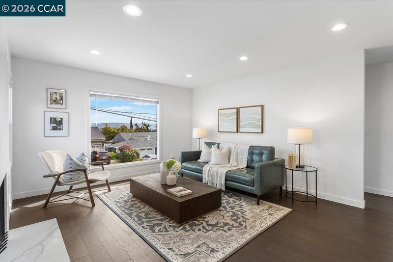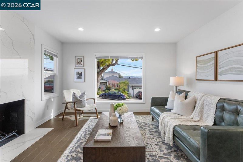 Welcome to 18417 Milmar Blvd in Castro Valley’s desirable Upper Valley. This remodeled 3-bed, 2-bath home offers 1,066 sq ft of stylish living with exceptional curb appeal, featuring modern upgrades inside and out. Inside, enjoy a light-filled living room w/sleek hardwood floors and a dramatic quartz fireplace. The remodeled kitchen showcases dark wood cabinetry, quartz counters and backsplash, gas range, Samsung dishwasher, and dining nook. The main level includes 3 bedrooms & a designer inspired bath w/tile shower, floating wood vanity, lighted mirror & speaker capabilities. The lower level offers a 2-car garage w/epoxy floors, over-sized walk-in storage or workshop space, 2nd full bath w/tiled stall shower & floating vanity, and a flexible utility space w/potential for in-law, office, or bonus living area w/laundry hook-ups and exterior access. The tiered backyard features patio space, lemon trees & scenic views. Additional upgrades include dual-pane windows, new electrical & plumbing, central A/C, heat and recessed lighting. Conveniently located near Lake Chabot, top-rated schools, BART, downtown, & easy freeway access. This move-in-ready home offers modern style, flexibility and an unbeatable location—ready to welcome its next owner. Open Saturday 2/7 2-4