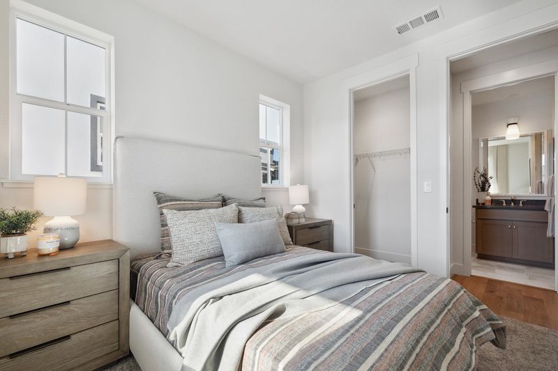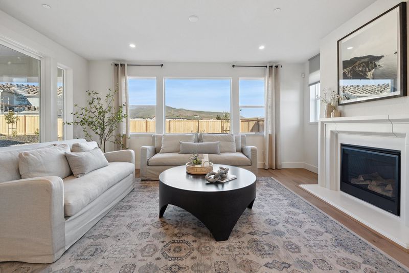 The Bennett Model Home For Sale!! A stunning two-story home featuring 4 bedrooms, 3 bathrooms, and 2,474 sq. ft. of living space. Upon entering, you’ll find a 4th bedroom with a walk-in closet and an adjacent full bathroom with a walk-in shower-ideal for guests, in-laws, or a home office. As you move through the entryway, the home opens up to a spacious open-concept living area that seamlessly connects the dining room, family room with a cozy fireplace, and chef’s kitchen.The kitchen is designed with a luxurious feel including a full quartz backsplash and pendent lighting. The livingroom features dual patio sliding doors that lead to a built in covered patio.The home has stunning large windows for natural lighting throughout. Upstairs, a versatile loft for flexible living, a laundry room, thoughtfully placed for comfort and convenience, and two additional bedrooms that share a full bathroom with a dual vanity, tub, and shower. The primary suite serves as your private retreat, featuring a spa-inspired en-suite bathroom with a soaking tub, tiled walk-in shower, dual vanity, and a large walk-in closet to complete the space. Beautifully designed Model home, Owned solar included.