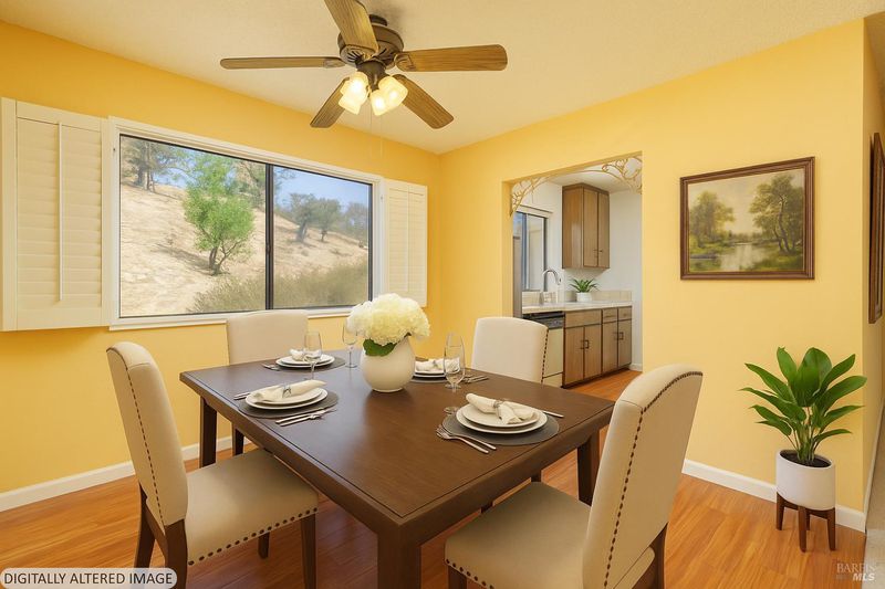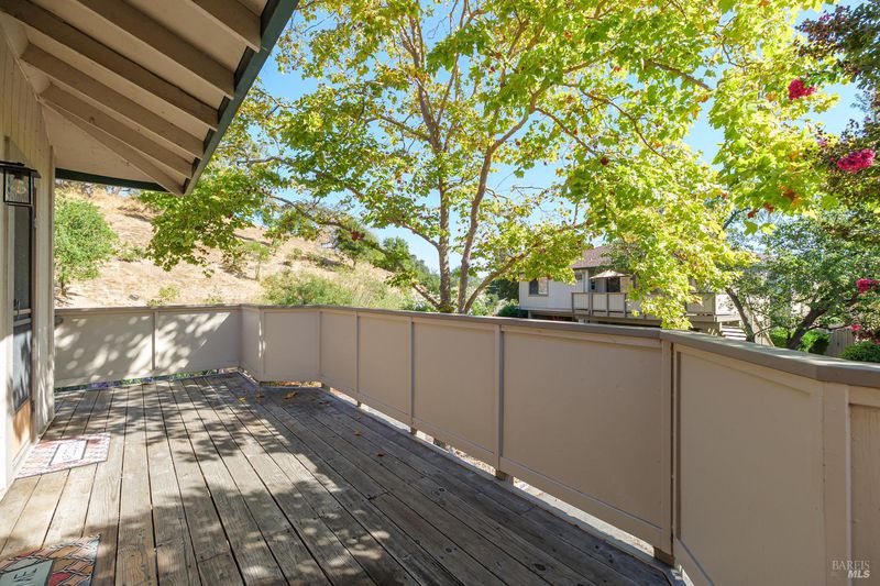 Welcome to your peaceful end-unit condo in Novato! This condo offers privacy, abundant light, and tranquil views of open space that will never be built on. Thoughtfully maintained this condo features two bedrooms, one bath, and a private deck perfect for morning coffee or evening relaxation. Upgrades include Brazilian Jakoba-style floors, gold-flecked Brazilian granite counters, and hand-painted Portuguese tile backsplash on kitchen walls. The kitchen also includes double stainless sink, stainless refrigerator and stove, and an oak-finish ceiling fan in the dining area that complements the home's warm, natural aesthetic with a hand-painted mural by a notable artist. Enjoy plantation shutters for year-round comfort and a bathroom accented with mosaic tiles featuring imported designer pieces from Italy, Greece, Portugal, and Africa. With two entryways, ample storage, a community pool, hot tub, and 2-car tandem carport (plus guest parking), this serene home offers easy access to shopping, dining, and easy access to Hwy 101 & 37.