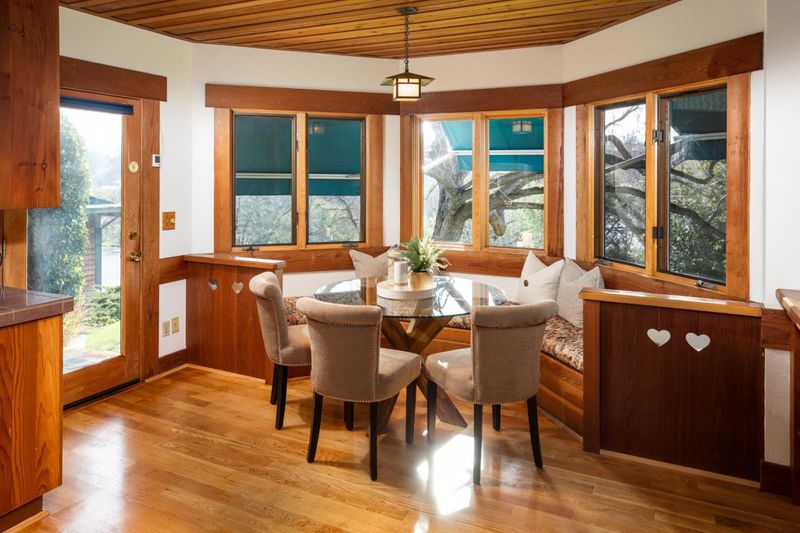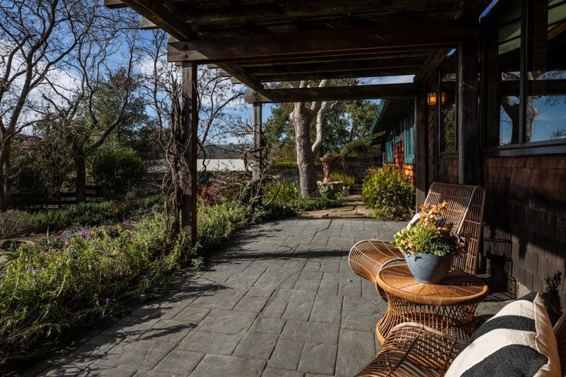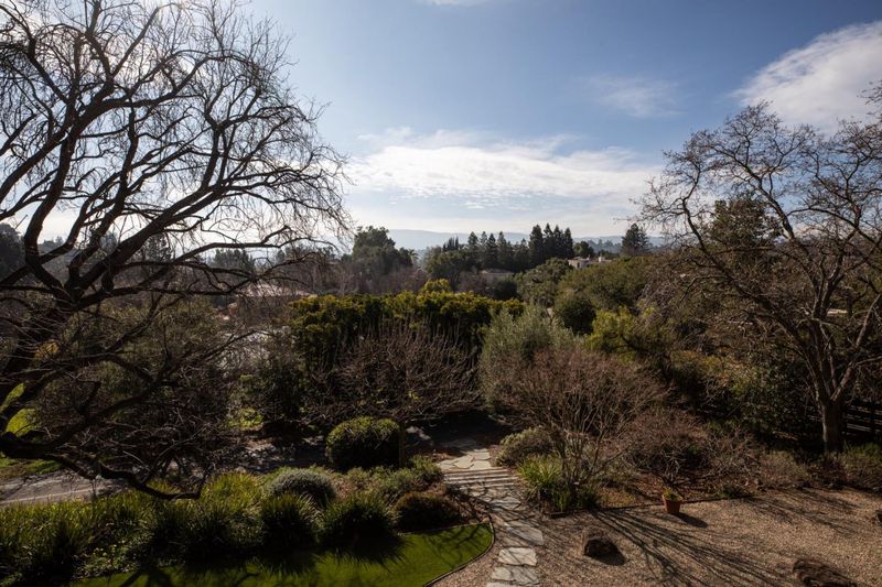 Nestled on a gently sloping one-acre parcel near Gunn High School, this brown-shingle, Maybeck-inspired residence offers approx. 3,650+/- sq ft of living space with exceptional privacy and serene garden views. Wisteria-draped arbors and sun-filled patios create a seamless indoor-outdoor lifestyle, while soaring ceilings, oak hardwood floors, and resawn redwood paneling reflect classic Bay Area craftsmanship. The home features 3 bedrooms and 4 bathrooms, including a dramatic living room with brick fireplace and abundant natural light. A family room with adjacent full bath provides flexibility for guests or media use. The kitchen includes a charming built-in banquette, and the formal dining room overlooks landscaped gardens. A spacious laundry room with pantry adds convenience. The second-floor owners suite offers library shelving, walk-in closet with skylight, and access to two decks. A private office with its own deck enjoys peaceful tree-top views. Grounds include easy-care turf and a tranquil zen rock garden. Property allows two horses and may offer future development potential, including possible SB9 options (buyer to verify). Current topographic survey available by request. One-car attached & 3 car detached garage. Ideally located near Stanford & top Palo Alto schools.