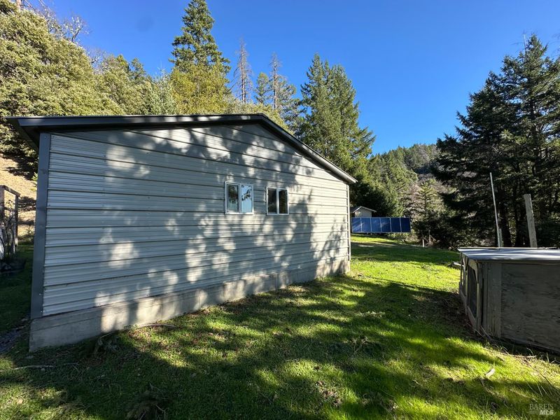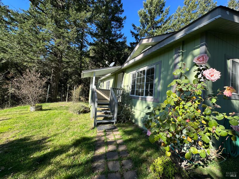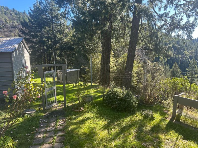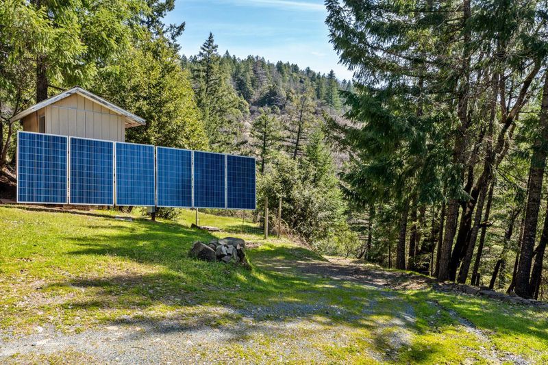 Set just off Bell Springs Road in the hills north of Laytonville, this private 83-acre off-grid property offers a peaceful place to settle into a quieter pace, only a couple of miles from Highway 101 via county-maintained dirt roads. The well-maintained, move-in ready 2 bedroom, 2 bathroom modular home sits on a permanent foundation and feels bright and cozy throughout. A wood stove and central heating provide comfort year-round, while solar power with a backup propane generator supports reliable off-grid living. A private well supplies water to both the home and garden area. The acreage is largely forested, while the home site itself is flat, bright, and sunny, with spectacular views. A short gravel driveway leads to the home, and the fenced yard area around it includes established trees and roses, creating a pleasant area to spend time outdoors and take in the surroundings. Behind the home, a couple of small roads wind down the mountain, inviting you to explore your land and hike down to a seasonal creek. Additional improvements include a large shed well suited for a workshop, storage, or hobby space, along with a spacious carport for covered parking. Altogether, this is a thoughtfully set-up property that balances comfort, privacy, and room to roam, offering a peaceful rural lifestyle that still feels convenient, with an easy 20-minute drive to town.