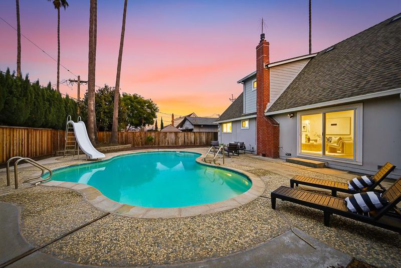 Welcome to this beautifully updated and maintained home in a prime location where pride of ownership shines. Spacious bedrooms and all newly installed flooring create a fresh, modern feel, while the inviting living area features a cozy fireplace with gas insert. A central HVAC system and brand-new water heater (2025) provide year-round comfort. The remodeled eat-in kitchen (2017) blends style and function with granite countertops, custom cabinetry, a Viking gas range, and 8-foot breakfast bar, complemented by tastefully remodeled bathrooms. The low-maintenance backyard offers a sparkling pool, a Japanese Yuzu tree, and palm trees in both front and back yards, creating a serene, resort-like setting. Ideally located just 8 minutes to Apple Park and 12 minutes to Nvidia, with easy access to Lawrence and San Tomas Expressways, walking distance to the library, close to multiple grocery stores, a future Costco 5 minutes away, and near Westfield Valley Fair, Santana Row, Westgate Center, and the future T&T Asian grocery. Excellent education options nearby include Harker, Stratford, Challenger, Action Day, and highly regarded Discovery Charter School (DCS), a top-rated public charter school that draws buyers to the neighborhood for its strong lottery advantage tied to local residency.