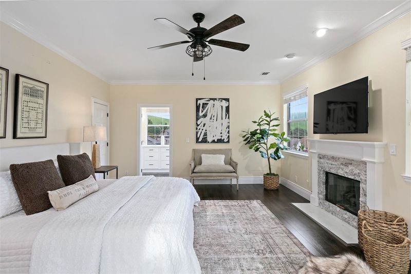 Perched on a knoll in the prestigious gated community of Rancho Solano, this stunning custom-built 4BD, 3.5BA home offers 3,283 sqft of refined living. A grand foyer welcomes you into elegant formal living and dining rooms, ideal for entertaining. Gourmet kitchen features natural quartzite countertops, stainless steel appliances, and a cozy breakfast nook—perfect for casual mornings. The inviting family room includes a fireplace and wet bar, creating a warm space to unwind. Retreat to the luxurious primary suite with fireplace, walk-in closet, and spa-inspired marble bathroom. A private downstairs bedroom with a full bath offers comfort and privacy for guests or multi-generational living. Step outside to enjoy a beautifully landscaped yard, highlighted by a flagstone patio, mature trees, and serene outdoor spaces for dining or relaxation. The oversized 2-car garage is paired with an additional golf cart garage for added convenience. Meticulously maintained and thoughtfully updated throughout, this home is located in one of Rancho Solano’s most sought-after neighborhoods—combining timeless elegance, comfort, and prime location near parks, trails, and recreational clubs. A rare opportunity to own a true gem!