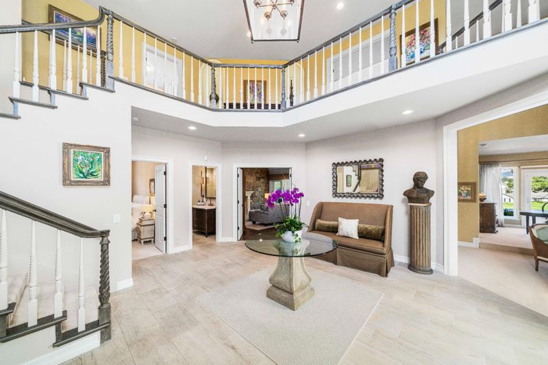 Simply one of the most elegant, and beautifully decorated homes in Ocean Colony! Olive trees, flowering shrubs, and a bubbling fountain, greet you at the front entry. An impressive two story foyer sets the stage for designer finishes and decorator details throughout. Custom cabinets, closets, window coverings, & paint finishes make this home truly spectacular. Attention to detail is evident from the kitchen, to the grand primary suite, exuding quiet luxury and a bird's eye view across two fairways and the 11th green. The striking tray ceiling with soft ambient lighting enhances the serene atmosphere, while the spa inspired bath offers Venetian plaster, separate vanities, steam shower, and a soaking tub positioned to take in the tranquil golf course views. Two additional spacious bedrooms are located the upper level, as well as a full bath and laundry room. The 4th bedroom & adjacent bath are on the lower level with an inviting sunny office overlooking the garden. Enjoy a custom outdoor fireplace, and huge flagstone patio, as you watch the golfers sink their putts! This beautiful gated community with the award winning Ritz Carlton hotel just beyond the gate, is one of the peninsula's best kept secrets! Come to the coast and live the lifestyle! Nothing to do here except move in!