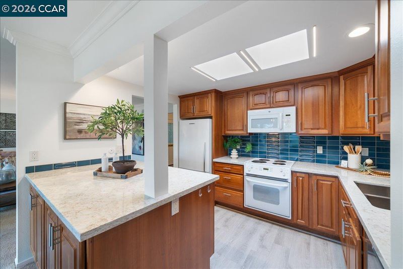 Dishwasher, Electric Range, Microwave, Refrigerator, Self Cleaning Oven, Dryer, Washer, Counter - Solid Surface, Stone Counters, Electric Range/Cooktop, Disposal, Self-Cleaning Oven, Skylight(s), Updated Kitchen