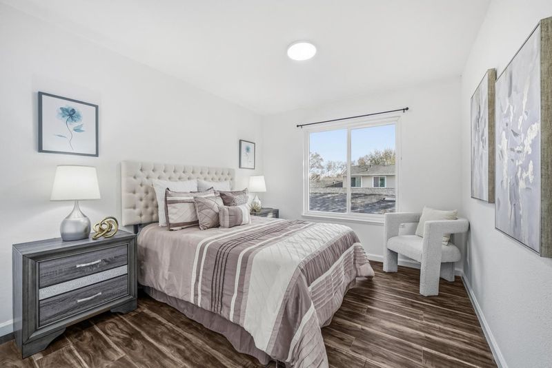 Welcome to this charming 4-bedroom, 2-bath corner-unit home in San Jose desirable North Valley. Featuring a rare ground-floor bedroom and full bath, this 1,320 sq. ft. residence offers a bright, functional layout ideal for families living. The kitchen includes tile countertops, ample cabinetry, and gas cooking, while the inviting family room features quality flooring. Enjoy the convenience of in-unit laundry, double-pane windows, and a private patio with secure access to a large side-by-side 2-car garage. Located within the Berryessa Union School District, this home is close to Light Rail, BART, parks, and popular shopping destinations such as 99 Ranch, Costco, Sprouts, and H-Mart. With easy access to Hwy 680/101/880 and major tech employers, plus low HOA dues covering water and exterior maintenance, this home offers exceptional comfort, convenience, and value.