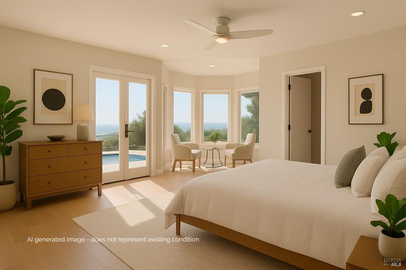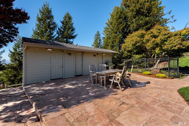 Perched on a quiet ridge line with panoramic views stretching from Petaluma to Santa Rosa, this gated hilltop estate offers 4.5 acres of privacy, scale, and possibility. The main, single-level, residence spans nearly 5,000 sq ft with a timeless floor plan, generous proportions, and the opportunity to create a truly remarkable modern retreat. Designed for both entertaining and everyday living, the home features formal living and dining rooms, a central kitchen with custom cabinetry and stone countertops, and a relaxed family room that opens to the deck and pool. The spacious primary suite anchors its own wing with private deck access, while two additional bedrooms offer separation and comfort for family or guests. Outdoor amenities include multiple patios, a sparkling pool overlooking the valley, and a thoughtfully designed garden area with raised beds and a charming potting shed. A detached 1,200 sq ft guest house features a full kitchen, bedroom, bath, and equally stunning views, ideal for guests or extended family. Quiet, private, and filled with opportunity, this is a rare chance to reimagine a legacy property in one of Sonoma County's most inspiring view locations.