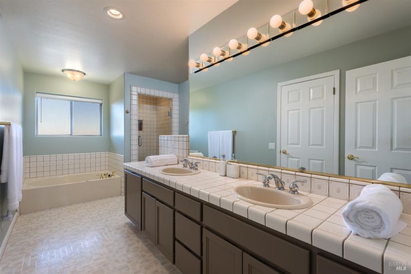 - Double Sinks, Shower Stall(s), Soaking Tub, Tile, Window