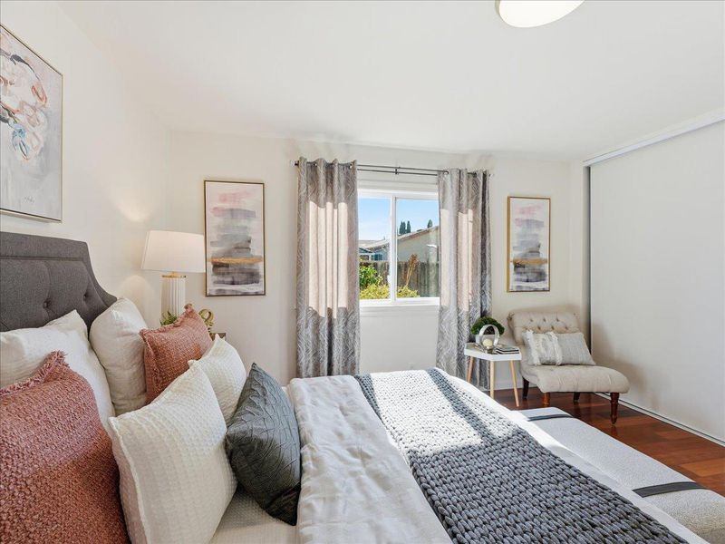 Welcome to this beautifully upgraded single-story home with a versatile bonus room. Tucked away on a quiet street, the property features an expansive backyard with a variety of mature fruit trees & an ideal indoor-outdoor lifestyle. *This light-filled residence offers a functional floor plan with 4-bedrooms & 2 baths plus bonus room designed for entertaining, working from home, & everyday living. *Brazilian cherry hardwood floors welcome you into an inviting foyer, a spacious living room, a cheerful kitchen lit with a bright skylight, granite counters, & SS appliances. *This upgraded home includes new interior, exterior paint, updated baths, dual-pane windows, recessed lights, central Heat & A/c, & more, making this home truly move-in ready. An attached finished two-car garage and driveway provide ample parking & storage. The serene backyard is a gardeners delight, with roses and an impressive selection of fruit trees, like apple, persimmon, guava, fig, nectarine, citrus, lemon, & more-perfect for relaxing, or enjoying homegrown harvests. Ideally located within walking distance to BART, Arroyo Park, tennis courts, Quarry Lakes & Alameda Creek Trails. Easy access to Fremont, I-880, Dumbarton Bridge, shopping & commuter routes.