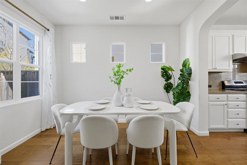 Beautifully maintained Toll Brothers home built in 2014, ideally located in the desirable Gale Ranch community of San Ramon. This elegant residence features a bright and spacious open-concept layout with a large gourmet kitchen, newly refinished cabinets, granite countertops, and generous storage—perfect for everyday living and entertaining. The living room is enhanced by a custom built-in TV cabinet and shelving, adding both style and functionality. Quality engineered hardwood flooring flows throughout both downstairs and upstairs, complemented by a newly installed, stylish two-tone staircase. Upstairs offers three bedrooms and two full bathrooms. The primary suite is well-proportioned and enjoys a pleasant valley view. The spa-like primary bathroom features quartz countertops and a dual-vanity design. Enjoy a cozy, low-maintenance side yard ideal for relaxation or casual outdoor dining. Residents have access to a community pool and enjoy a prime location within walking distance to Quail Run Elementary School and nearby parks. Just minutes to award-winning middle and high schools, shopping, and dining. This home offers comfort, convenience, and the best of San Ramon living.