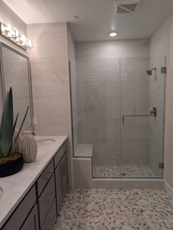 - Double Sinks, Primary - Stall Shower(s), Shower over Tub - 1, Tile