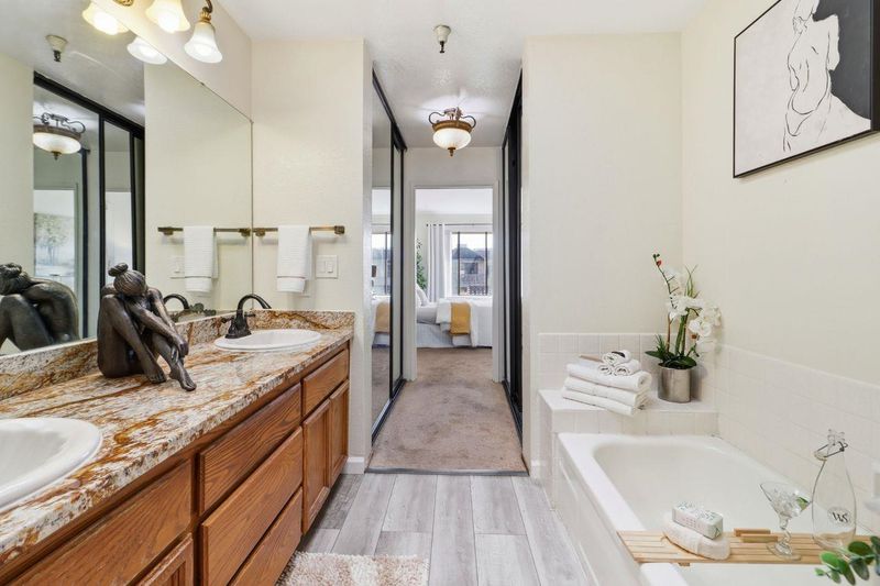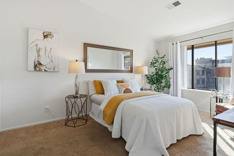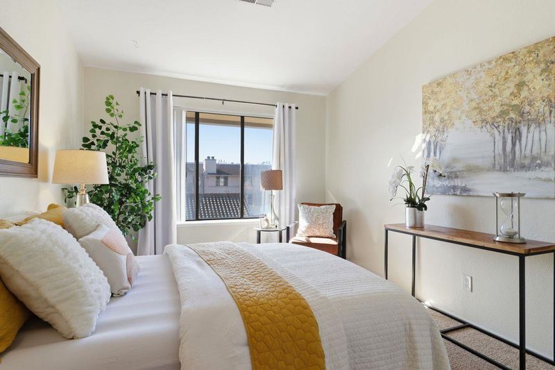 Discover the perfect blend of comfort, convenience, and lifestyle in this beautifully located condo in the heart of Downtown San Leandro. This sunlit 2-bedroom, 1¼-bath residence offers exceptional walkability, surrounded by shopping, dining, and everyday essentials, with unbeatable access to BART, bus lines, main streets, and major highways. Unit 419 features a bright, airy interior with elegant neutral décor, making it truly move-in ready. The kitchen boasts stone countertops, ample cabinetry, and a dining area enhanced by floor-to-ceiling buffet cabinet storage. The spacious living room opens to a private balcony overlooking the expansive serene outdoor grounds. The expansive primary suite includes a luxurious bath with double vanity, soaking tub, and separate shower. A versatile second bedroom is perfect for guests or a home office.and inside the unit washer dryer. Enjoy resort-style amenities including a spectacular pool and fitness features. Priced right and bound to attract serious attention—don’t sleep on this unit. Perfect for singles, couples, or small families seeking downtown living at its finest.