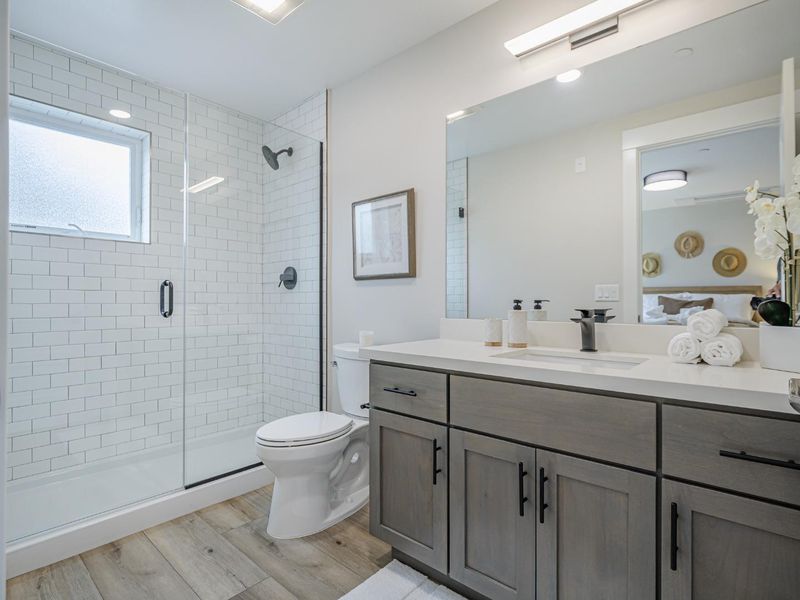 Primary - Stall Shower(s), Shower over Tub - 1, Stall Shower - 2+, Tile, Updated Bath