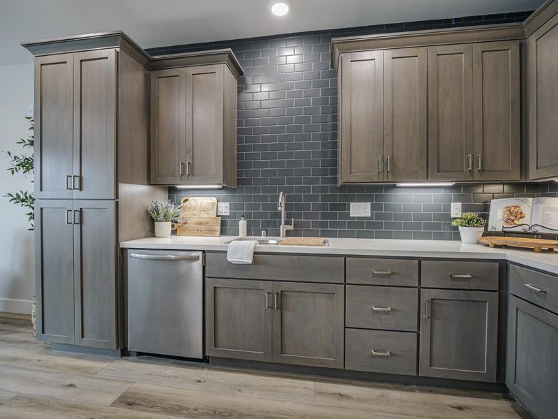 Countertop - Quartz, Dishwasher, Garbage Disposal, Hood Over Range, Island with Sink, Oven Range - Gas, Refrigerator