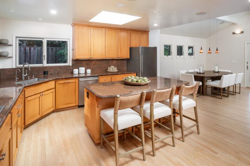 Beautifully updated home on a rare level lot of just over one-half acre with natural light, generous scale and fresh updates. Located in the Loyola Corners neighborhood, wide frontage showcases the newly landscaped wraparound yards dotted with an array of mature trees creating an immediate sense of arrival. Freshly painted interiors and refinished hardwood floors provide a crisp, polished backdrop for the three-level floorplan that begins with a formal living and dining room. A designer kitchen with island opens seamlessly to a spacious family room and defined dining area plus wide sliding glass doors to a flagstone patio and vast yard. There are 5 bedrooms and 3 baths arranged across two levels, including a main-level primary suite with sauna and spa-inspired bath. Rounding out the accommodations is the lower-level recreation/fitness/playroom and ample storage space for added flexibility. Excellent Los Altos schools, close-in shopping, and nearby hiking trails complete the appeal.