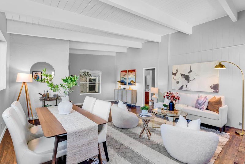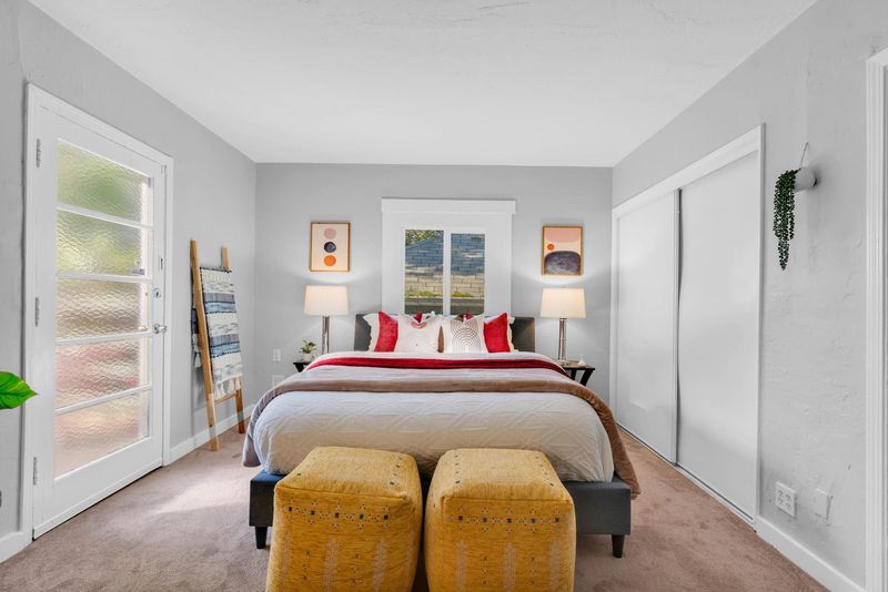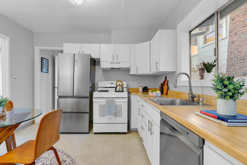 Welcome to 4409 Brookdale Avenue, a charming single-family home in Oakland's desirable Maxwell Park neighborhood. This 1,104 square-foot residence offers three bedrooms and two bathrooms, providing ample space for comfortable living. Located steps from Maxwell Park and Courtland Creek Park, this property promises a serene lifestyle in a prime location. As you approach, a set of stairs leads to a welcoming front gate and covered porch. Inside, the bright great room features a lofted ceiling, large windows, and a classic brick fireplace, creating an inviting atmosphere. The kitchen, centrally located, is equipped with modern amenities, including a new stainless steel refrigerator, dishwasher and Range complemented by generous cabinet and counter space. The first bedroom off the kitchen features hardwood floors and two spacious closets. The rear hallway leads to two additional carpeted bedrooms with large windows and ample closet space. The larger bedroom offers direct access to the expansive backyard, perfect for urban gardening. A convenient laundry area with a washer and dryer is strategically placed between the kitchen and back bedrooms. The home includes two full bathrooms, each with a shower over tub. A single-car garage at street level provides additional storage.