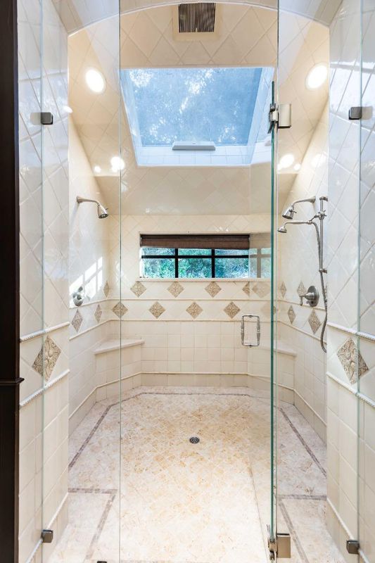 Double Sinks, Full on Ground Floor, Half on Ground Floor, Outside Access, Skylight, Stall Shower - 2+, Stone, Tile, Tub