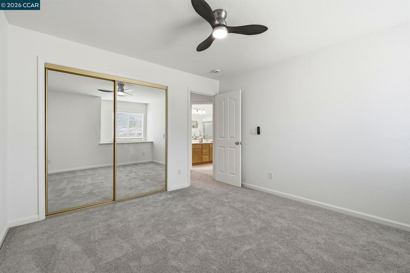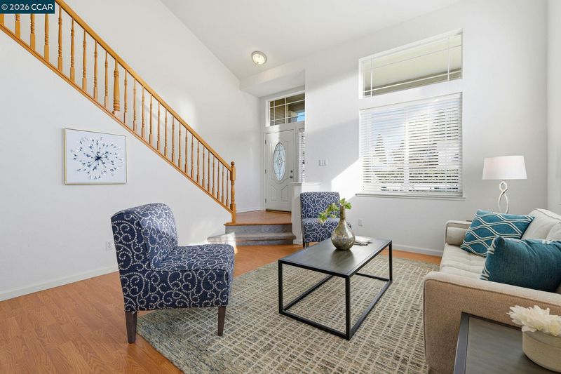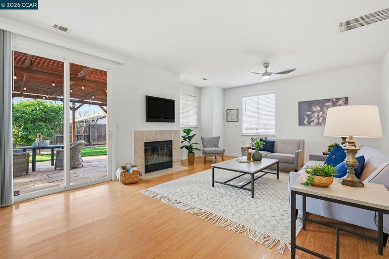 Welcome to this beautifully updated, freshly painted, move-in-ready home nestled in a peaceful, desirable neighborhood. Light-filled living spaces, soaring ceilings, and a dramatic staircase highlight the thoughtfully designed main level, which includes a bedroom and a full bathroom. The bright, spacious kitchen, with beautifully refinished cabinetry and brand-new appliances, flows seamlessly into the adjacent dinette and family room, featuring a wood-burning fireplace and sliding doors that open to an expansive backyard, creating an ideal area for everyday living, entertaining, and relaxation. Upstairs, with newer carpet, are generously sized bedrooms and a full bath. The spacious primary suite includes dual sinks and an updated stall shower. Additional highlights include new window blinds, new ceiling fans/light fixtures, and new bathroom light fixtures. Step outside to a wide-open backyard with a pergola-covered patio and ample space for pets, play, and year-round enjoyment. The two-car garage with an additional drive-through access door to the backyard is ideal for parking a boat or work vehicle, or for extra storage.