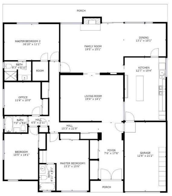 - Countertop - Granite, Hood Over Range, Island, Oven Range - Built-In, Gas, Oven Range - Gas, Refrigerator
