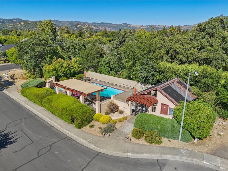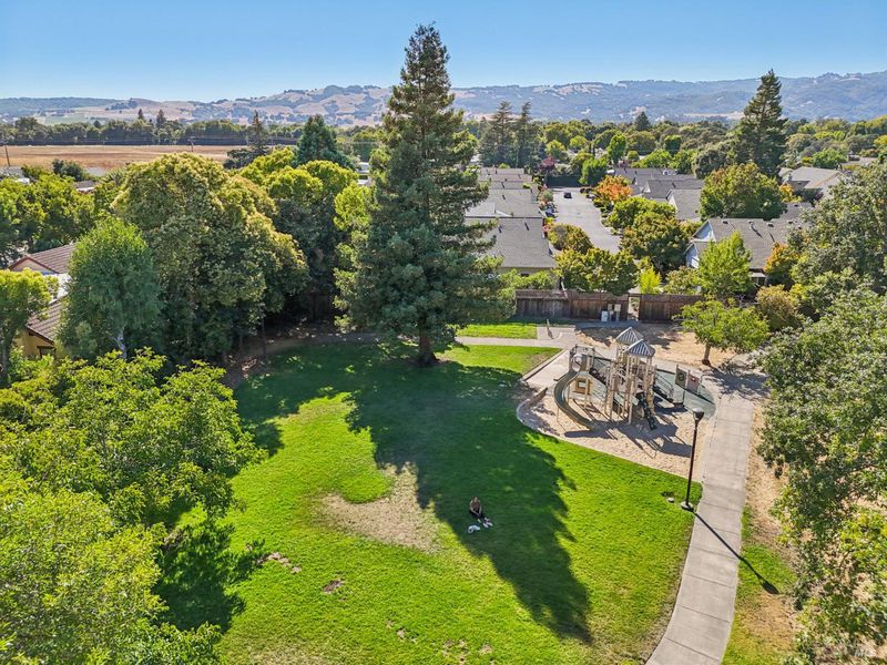 Lovely single level condo with a Mediterranean flair! Well-placed skylights throughout provide so much natural light. The bright open kitchen has plenty of counter and storage space, oversized Subzero refrigerator/freezer, gas cooktop, garden window, side patio access and more. The living room with high ceilings has a charming gas log fireplace and plenty of room to relax and spread out. The generous Primary ensuite has a large step-in shower, its own Cedar lined walk-in closet, plus high ceilings and comfortable outdoor access. The second bedroom could be very adaptable as both an office or guest bedroom with existing Murphy bed. Located across from the pool/spa area, backed right up to a park, plus only steps from the Fryer Creek Trail. If you want just a little bit more than standard, this private end unit with large back yard plus side patio is not to be missed.