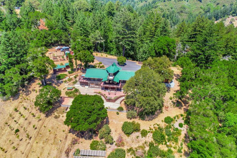A rare find: gated privacy + acreage + views + guest house in Los Gatos. Set on ~21.6 acres - panoramic views, your own trails, and true resort-style living - minutes to Skyline adventures and an easy drive to downtown Los Gatos. The 3083 sf main residence with nearly 700 sf of bonus space is wrapped in windows with soaring ceilings and deck-to-view entertaining, complemented by a 480 sf guest house with 300 sf of accessory structures for visitors, income, or work from home flexibility. Showpiece smart chef's kitchen with premium appliances, dual beverage fridges, and radiant-heat floors. Property amenities include a producing orchard, fenced garden, wine cellar, vineyard-ready soil, solar power with backup generator, bocce/petanque court, detached two-car garage (642 sf), abundant parking, private trails, and multiple outdoor entertaining areas. An exceptional opportunity for a private mountain retreat, vineyard compound, or legacy estate offering rare seclusion with convenient proximity to Los Gatos and Silicon Valley. For open houses and by-appointment showings, please text listing agent to receive the private gate code.