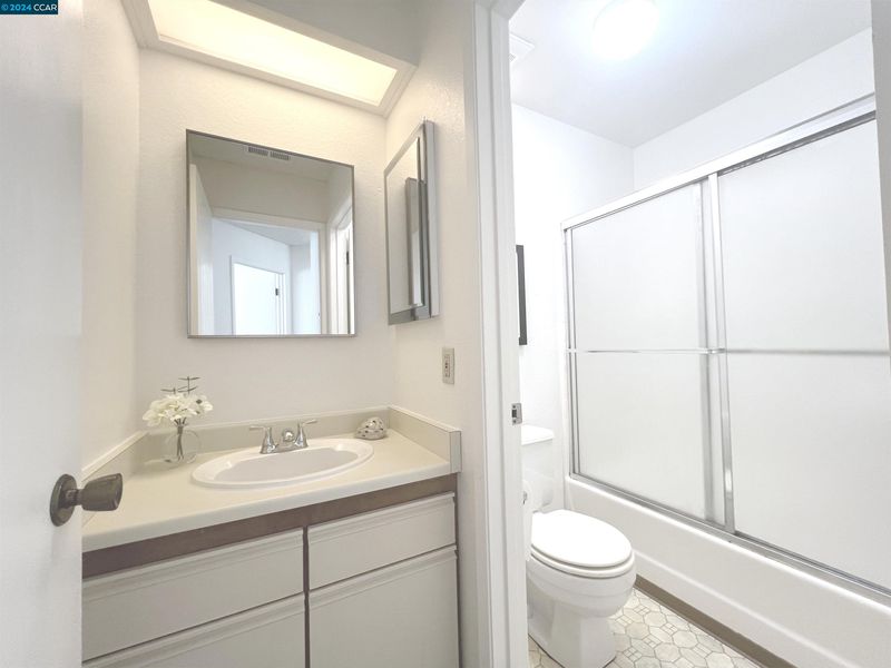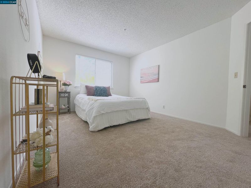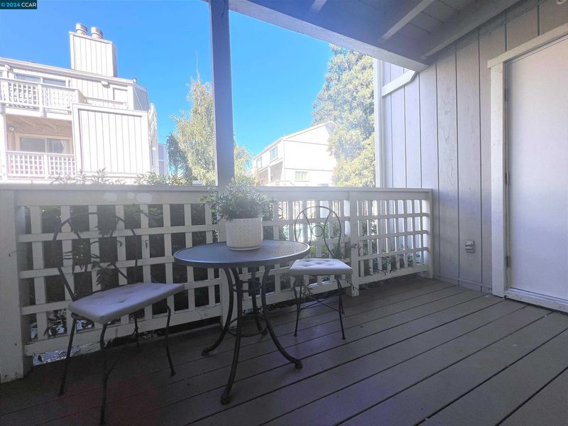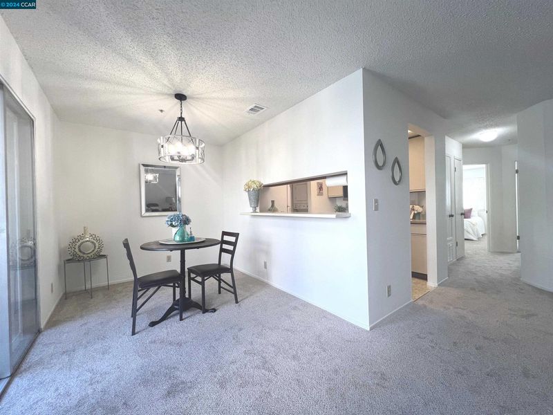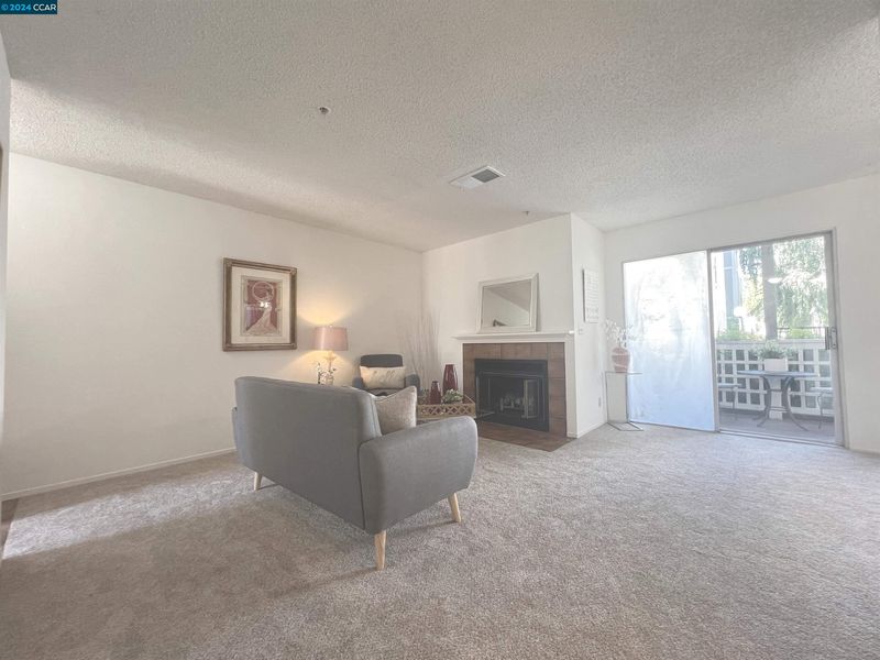 This charming condo is nestled in the popular Oak Road Villas Community in Walnut Creek offering a bright & open floor plan and comes complete with new carpeting, freshly painted interior, new stainless-steel appliances, stacked washer & dryer in unit, full bathroom, inviting fireplace and adorable patio. As you enter the home you will be delighted with the living room filled with natural light from the wall of sliding glass doors overlooking the patio and a lovely, tiled wood burning fireplace making the room feel warm and inviting. The kitchen comes complete with versatile breakfast bar and generous counterspace and cabinets for storage and boasts stainless steel appliances including a built-in microwave, sleek oven and stovetop and dishwasher making cooking and entertaining a delight. The kitchen flows beautifully into the bright & cheery dining area with modern chandelier and flooded with natural light through the sliding glass doors leading to the private covered patio. The primary bedroom is spacious & bright with lovely window & large walk-in closet. The second bedroom is roomy & includes ample closet space with mirrored doors. The full bathroom includes a vanity & tiled shower over tub. There are two additional closets in the hallway & large, secured storage on patio.