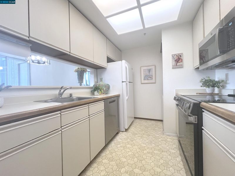 - Dishwasher, Electric Range, Microwave, Free-Standing Range, Refrigerator, Self Cleaning Oven, Dryer, Washer, ENERGY STAR Qualified Appliances, 220 Volt Outlet, Breakfast Bar, Counter - Laminate, Counter - Solid Surface, Electric Range/Cooktop, Range/Oven Free Standing, Self-Cleaning Oven