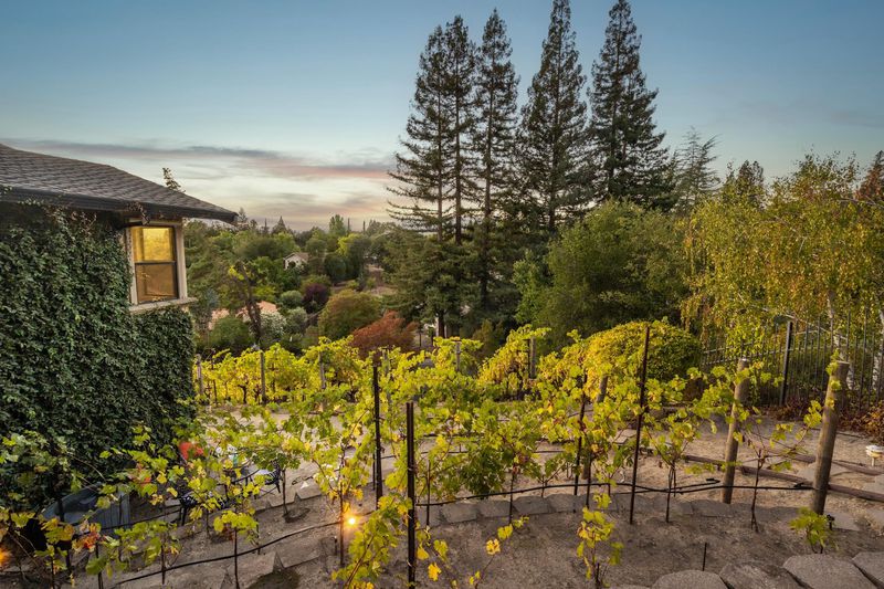 Welcome to this private gated vineyard estate offering resort-style living and stunning sunset views. Located on a quiet court in the Round Hill Country Club community, this home features a remodeled kitchen with a large island with built-in dining table, quartz countertops, abundant cabinetry, built-in desk, window bench and access to a private balcony for al fresco living and dining. The adjacent family room offers vaulted ceilings, a wet bar, and easy indoor-outdoor flow. The main level includes a private guest suite and a flexible bonus room ideal for an office, media room, gym, or play space. With 5 oversized bedrooms and 3.5 updated baths, the primary suite provides a serene retreat with direct outdoor access, dual walk-in closets, a deep soaking tub, dual vanities, and dual water closets. The backyard features a private vineyard, pool and spa, outdoor kitchen pavilion, and generous patio areas surrounded by lush landscaping—perfect for relaxing or entertaining. A detached art studio offers a quiet creative or work-from-home space. Additional highlights include a temperature-controlled wine cellar, large storage room, and 3-car garage. Ideally located near Round Hill Country Club, downtown shops and dining, top-rated schools, parks, and freeway access.