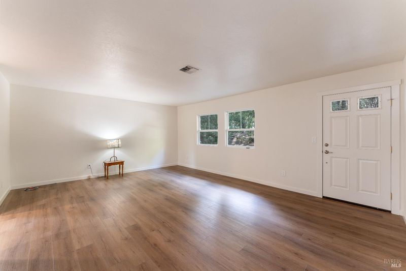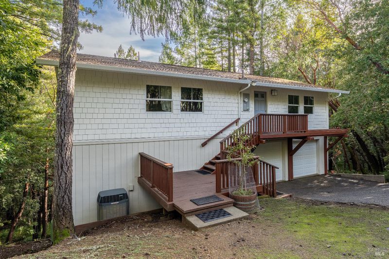 Newly renovated and move-in ready, this thoughtfully updated 3-bedroom, 2-bath home offers a rare blend of modern comfort and a truly special setting. Backing to the greenbelt and golf course, and surrounded by towering redwood and fir trees, the home feels private, peaceful, and naturally connected to its surroundings. At approximately 1,344 square feet, the layout is functional and inviting, with a spacious living room and excellent indoor-outdoor flow. Treehouse-like views can be enjoyed from the kitchen, main deck, and a private balcony, creating a daily connection to the forested landscape. Recently renovated decking with wire panels enhances both safety and the expansive views. The interior has been comprehensively refreshed with new vinyl plank flooring throughout and fresh interior paint. The updated kitchen features new countertops, a stainless steel electric range with vent hood, stainless dishwasher, and a new stainless sink with flexible sprayer, along with recessed lighting for a clean, modern feel. Both bathrooms feature custom lighting, with the primary bath offering a luxury walk-in shower and a custom vanity with a unique ceramic sink basin. Additional upgrades include custom closet organizers in all bedrooms, new ceiling fan/light fixtures in each bedroom and the dining area, central heating and air conditioning, and a roof less than 10 years old. A steel-reinforced foundation adds an extra level of stability and peace of mind. Laundry hookups are conveniently located in the hall, and the attached two-car garage provides everyday practicality. This is a rare opportunity to own a fully updated home in a setting that feels private and elevatedyet remains attainable. A perfect fit for buyers seeking a turnkey property with character, views, and long-term comfort.